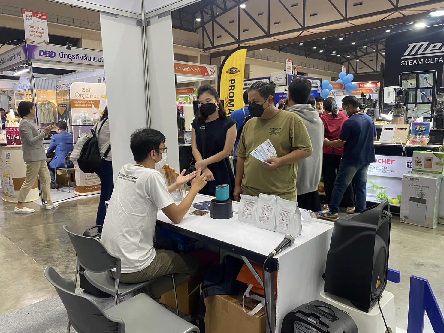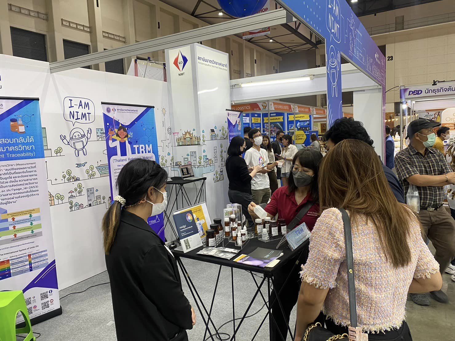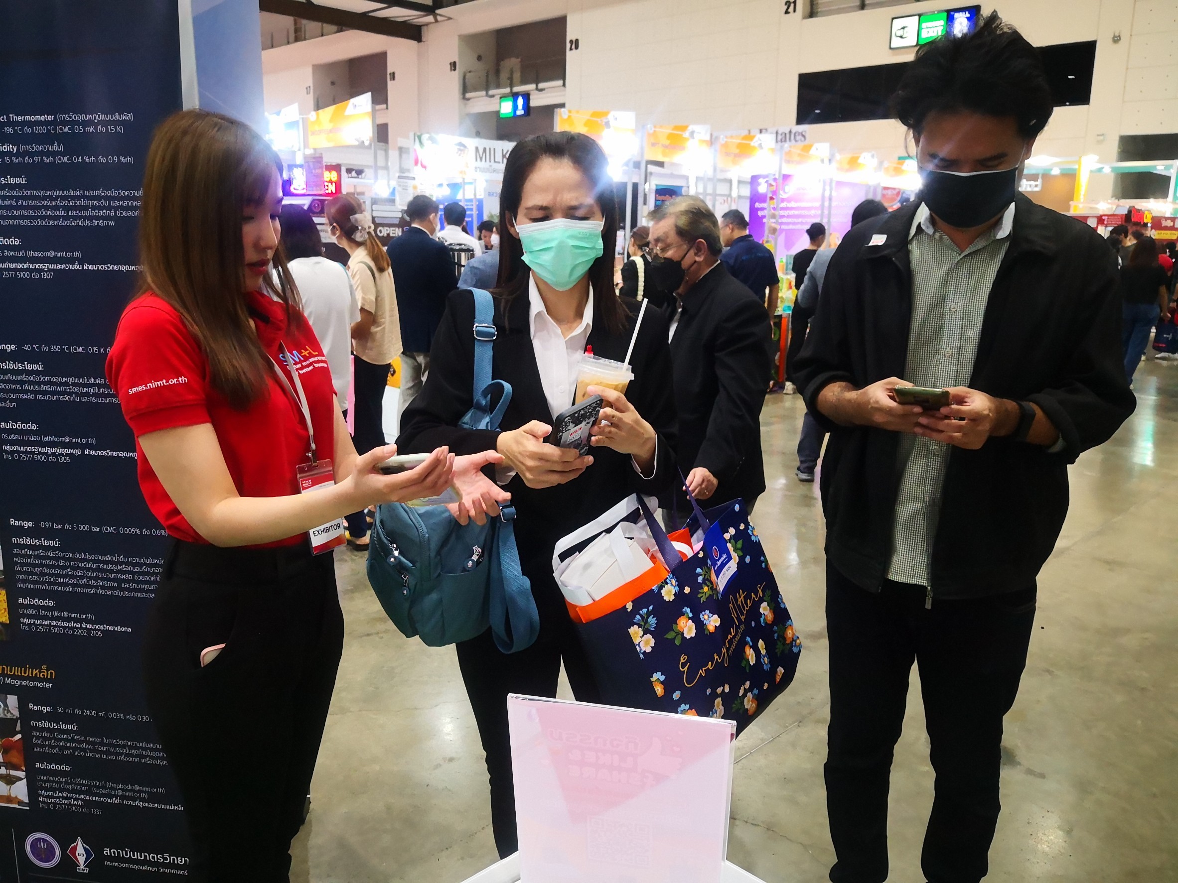 โดยครั้งนี้ นับเป็นก้าวใหม่ของมว. ที่จะทำให้ SME ไทยได้รู้จักสถาบันมาตรวิทยาแห่งชาติ มากยิ่งขึ้น เพื่อสนับสนุนและยกระดับสินค้าและนวัตกรรมรวมทั้งเทคโนโลยีของ SME ไทยให้มีมาตรฐาน และเป็นที่ยอมรับในระดับประเทศและระดับสากล โดย มว. ได้นำเสนอนิทรรศการด้านการสอบเทียบเครื่องมือวัด อาทิ บริการมาตรวิทยา…เพื่ออุตสาหกรรมอาหาร พร้อมทั้งแนะนำผลิตภัณฑ์ TRM (Thailand Reference Material) หรือวัสดุอ้างอิงรับรองที่ผลิตโดยสถาบันมาตรวิทยาแห่งชาติ ที่จะช่วยสร้างความมั่นใจในผลการวิเคราะห์และทดสอบที่เกี่ยวข้อง เพื่อให้ได้สินค้าที่มีคุณภาพและมีมาตรฐานตามระบบสากล รวมไปถึงสถาบันได้จัดให้มีผู้เชี่ยวชาญคอยให้คำปรึกษาและคำแนะนำเกี่ยวกับงานวัดและทดสอบ อาทิ การเลือกใช้ผลิตภัณฑ์ TRM,การให้คำปรึกษาด้านการใช้เครื่องมือและแถบเครื่องวัดสีกาแฟ (การเทียบสีของเมล็ดกาแฟที่ได้จากการคั่ว) เป็นต้น นอกจากนี้ยังได้แนะนำบริการต่างๆของสถาบัน รวมไปถึงประชาสัมพันธ์ช่องทางการติดต่อสื่อสารระหว่างสถาบันกับผู้ใช้บริการให้สามารถเชื่อมต่อถึงกันได้สะดวกมากขึ้น ทั้ง website, facebook, Youtube, Instragram โดยสถาบันได้จัดกิจกรรมให้ความรู้ พร้อมทั้งสามารถเข้าร่วมกิจกรรมเพื่อรับของที่ระลึกกันได้ตลอดการจัดงาน ซึ่งผู้ที่สนใจยังสามารถเข้าร่วมชมงานนิทรรศการในงานดังกล่าวได้จนถึงวันอาทิตย์ที่ 9 กรกฎาคม 2566 ณ อิมแพค เมืองทองธานี Hall 7-8 บูธ A1fb