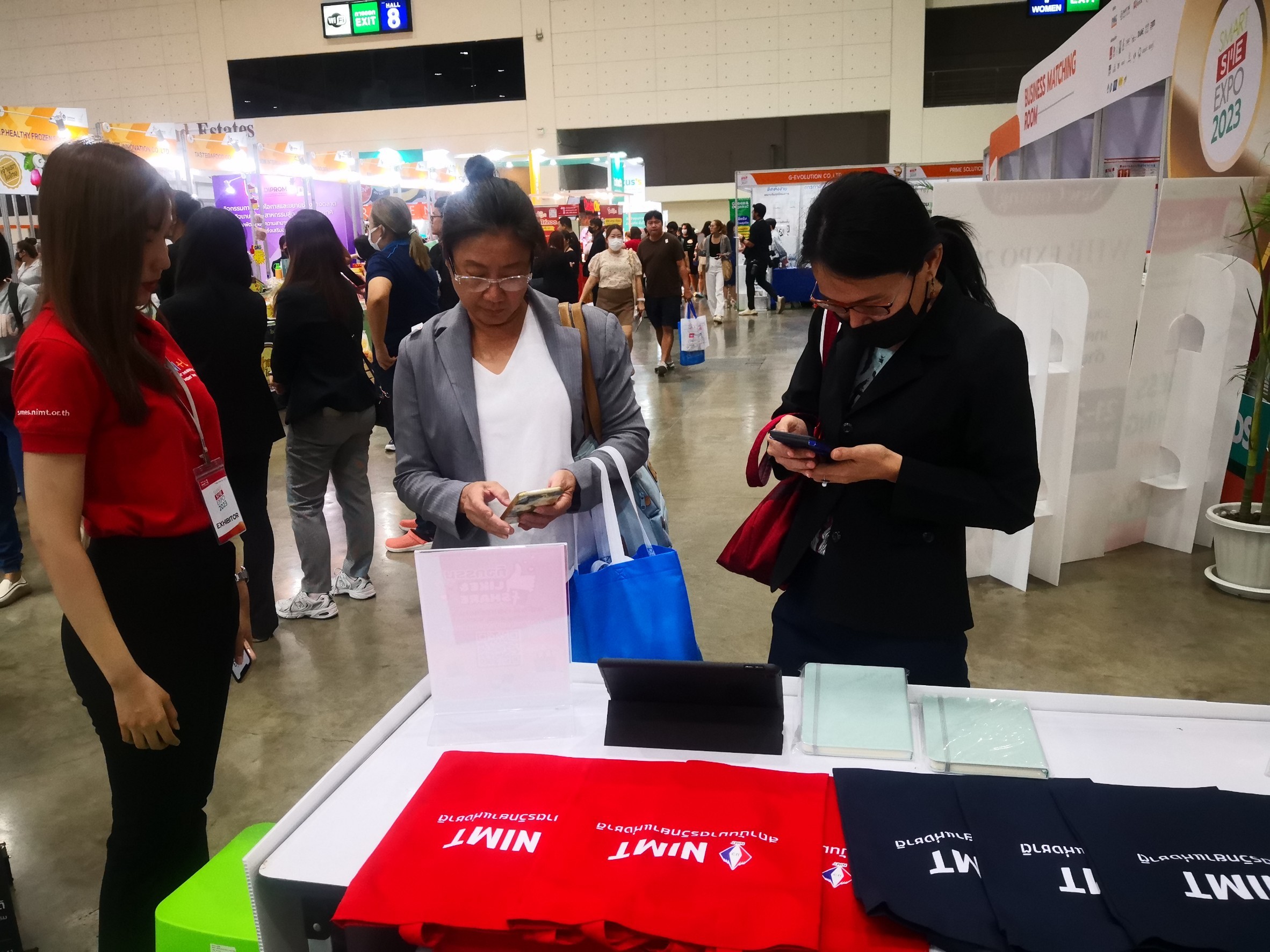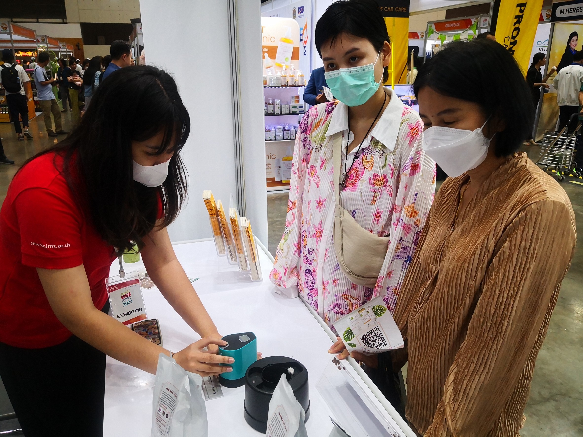สถาบันมาตรวิทยาแห่งชาติ (มว.) เข้าร่วมการจัดนิทรรศการในงาน “SMART SME EXPO 2023” ที่เป็นเวทีที่เปิดโอกาสให้ผู้ประกอบการและประชาชนที่สนใจได้เข้าแสดงนิทรรศการและเยี่ยมชมงาน โดยภายในงานได้รวบรวมผู้ประกอบการต้นแบบที่มีความพร้อมที่จะถ่ายทอดรูปแบบ หรือเป็นกลุ่มผู้ประกอบการที่จะสามารถสร้างโอกาสทางธุรกิจสำหรับประชาชนที่สนใจได้ในรูปแบบใดรูปแบบหนึ่ง เช่น แฟรนไชส์ ตัวแทนจำหน่าย รับผลิต รับบริการสำหรับธุรกิจ ให้คำปรึกษาทางธุรกิจ เป็นต้น พร้อมทั้งเป็นช่องทางในการต่อยอด หาพันธมิตรคู่ค้า สร้างโอกาสทางธุรกิจและสร้างงานให้แก่ผู้สนใจและประชาชน ทั่วไป