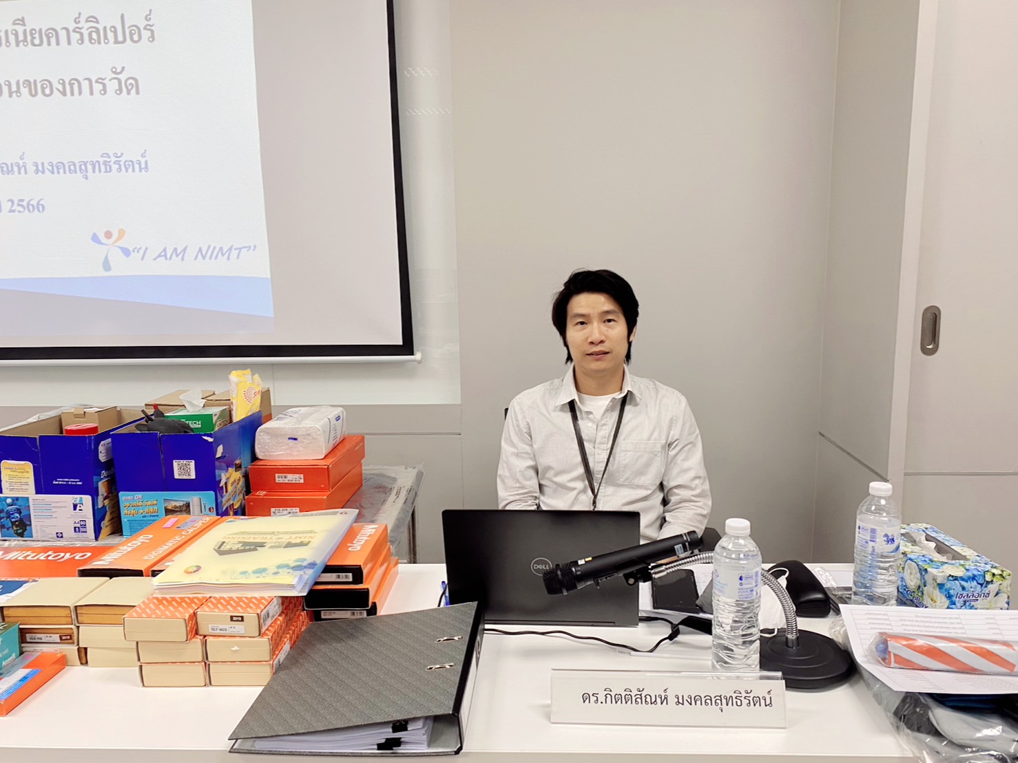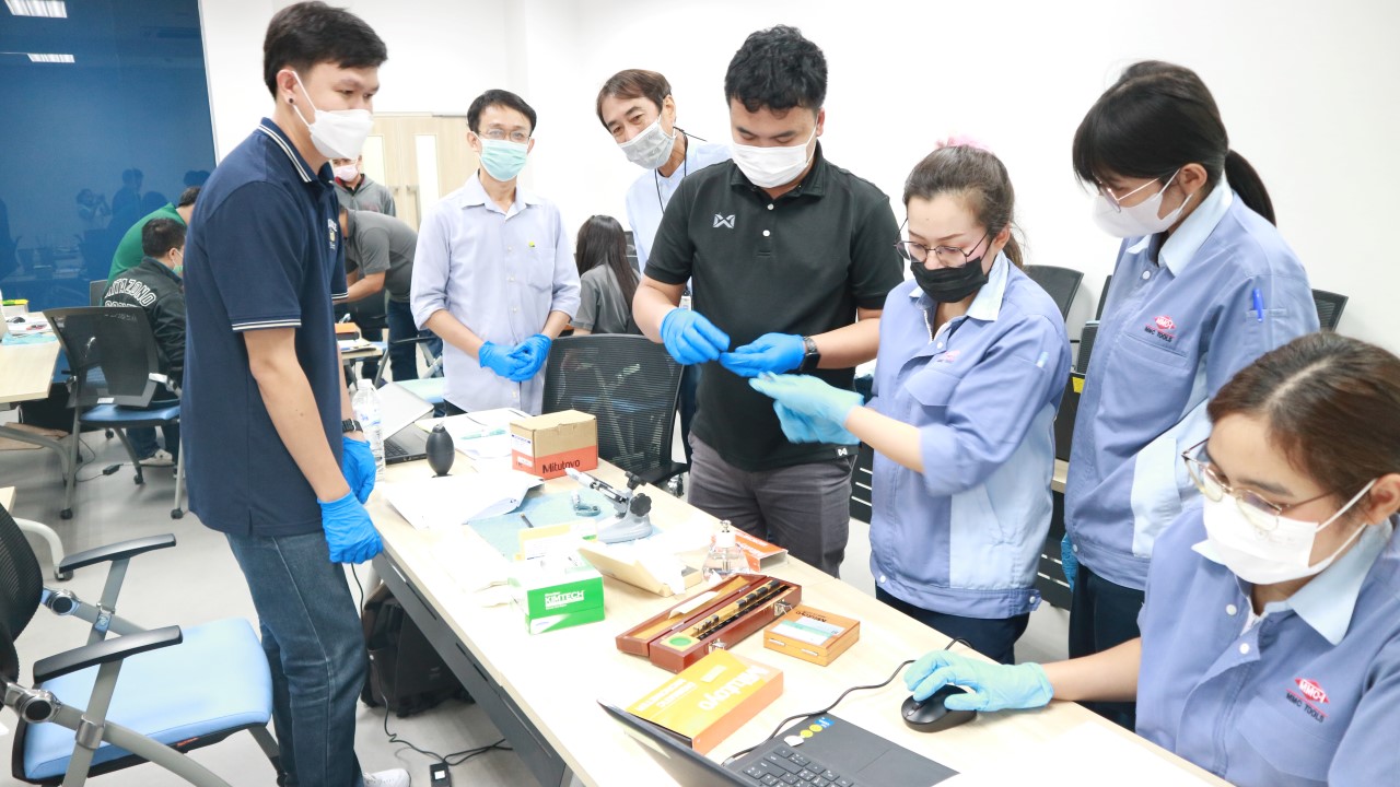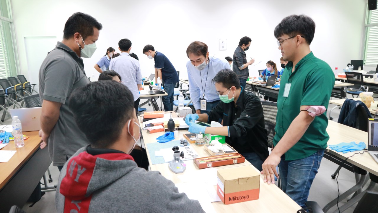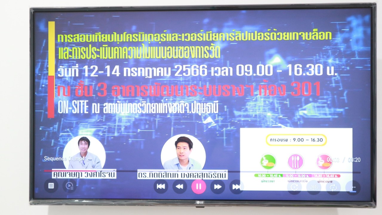 บรรยายโดย นายเจษฎา วงศาโรจน์ (วิทยากร) นักมาตรวิทยาชำนาญการพิเศษ และ ดร.กิตติสัณห์ มงคลสุทธิรัตน์ (ผู้ช่วยวิทยากร) นักมาตรวิทยาชำนาญการพิเศษ กลุ่มงานมาตรฐานปฐมภูมิความยาว ฝ่ายมาตรวิทยามิติ โดยผู้เข้ารับการอบรมจะได้เรียนรู้เนื้อหาทั้งในภาคทฤษฎี และภาคปฏิบัติ อาทิ ความสามารถสอบกลับได้ด้านความยาวมาตรฐาน การคำนวณขอบเขตความคลาดเคลื่อนที่ยอมรับได้ การใช้เกจบล็อกตามมาตรฐาน ISO 3650 และบำรุงรักษาเกจบล็อก การสอบเทียบไมโครมิเตอร์ตามมาตรฐาน JIS B 7502 และการประเมินค่าความไม่แน่นอนของการสอบเทียบไมโครมิเตอร์ พร้อมทั้งเรียนรู้วิธีการการสอบเทียบเวอร์เนียคาร์ลิปเปอร์ตามมาตรฐาน JIS B 7507 ควบคู่ไปกับการประเมินค่าความไม่แน่นอนของการสอบเทียบเวอร์เนียคาร์ลิปเปอร์ และตอบข้อซัก-ถาม เพื่อให้ผู้เข้าอบรมสามารถนำความรู้ที่ได้ไปประยุกต์ใช้ในการปฏิบัติงานได้จริง ณ ห้องประชุมชั้น 3 อาคารพัฒนามาตรฐานการวัดเพื่อรองรับการพัฒนาระบบราง (มว.) จ.ปทุมธานี