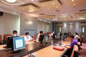 - คุณลักขณา ตระกูลทับทิมดี หัวหน้ากลุ่มงานสารบรรณและการประชุม และคุณชูศักดิ์ เชื้อสาย หัวหน้ากลุ่มงานอาคารสถานที่และธุรการ