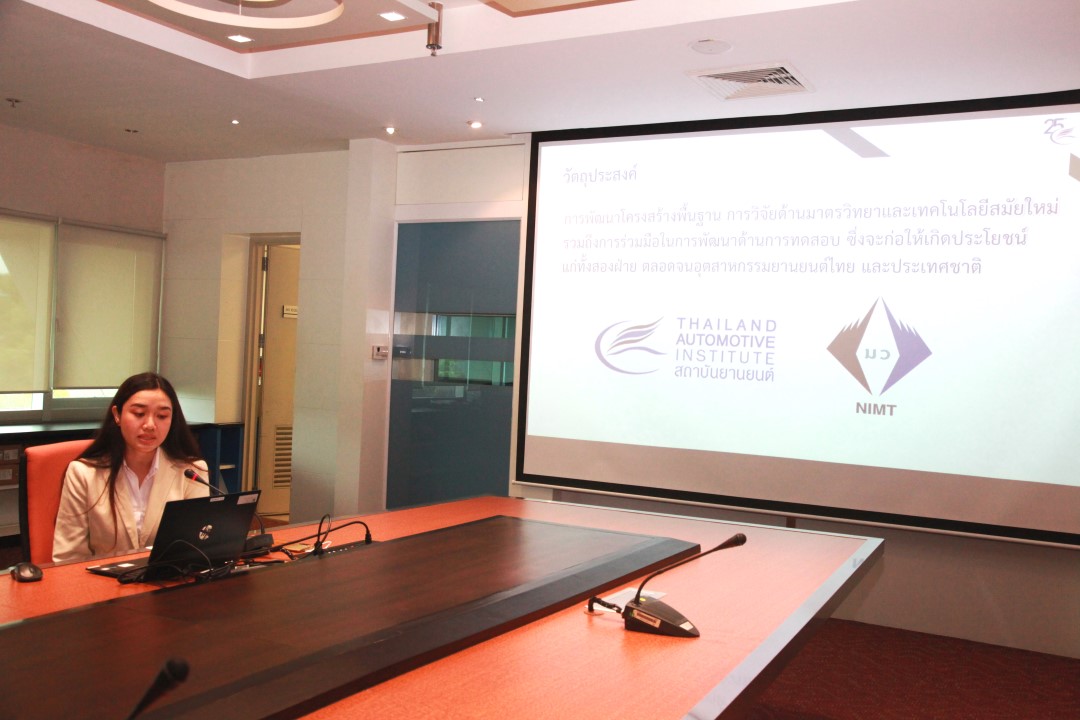 ในโอกาสนี้สถาบันยานยนต์ ได้หารือถึงความร่วมมือภายใต้บันทึกความเข้าใจถึงการสนับสนุนด้านเครื่องมือและบุคลากรผู้เชี่ยวชาญเฉพาะทางด้านการสอบเทียบและการพัฒนาเครื่องมือ จากสถาบันมาตรวิทยาแห่งชาติ เพื่อนำไปใช้ในการพัฒนาศักยภาพและประสิทธิภาพของเครื่องมือทดสอบสำหรับห้องปฏิบัติการทดสอบตามมาตรฐาน ทั้ง 2 ศูนย์ทดสอบภายใต้การดำเนินงานของ สถาบันยานยนต์ คือ สถาบันยานยนต์ (ฝ่ายทดสอบ และวิศวกรรม) สำนักงานบางปู และ ศูนย์ทดสอบยานยนต์และยางล้อแห่งชาติ อ.สนามชัยเขต จังหวัดฉะเชิงเทรา