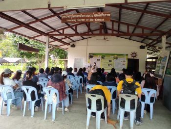สำนักงานปลัดกระทรวงการอุดมศึกษา วิทยาศาสตร์ วิจัยและนวัตกรรม จัดโครงการส่งเสริมวิถีพอเพียงตามรอยพระยุคลบาท ณ ศูนย์ศึกษาการพัฒนาเขาหินซ้อนอันเนื่องมาจากพระราชดำริ จังหวัดฉะเชิงเทรา เพื่อเรียนรู้ สืบสาน ศาสตร์พระราชา และส่งเสริมการเรียนรู้ตามหลักปรัชญาของเศรษฐกิจพอเพียง ซึ่งเป็นคุณธรรมเป้าหมายที่จะปลูกฝัง ส่งเสริมให้บุคลากร กระทรวงการอุดมศึกษา วิทยาศาสตร์ วิจัยและนวัตกรรม นำไปประยุกต์ใช้ในการปฏิบัติงาน และดำเนินชีวิตประจำวัน นำไปสู่การพึ่งพาตนเองอย่างยั่งยืน ในการนี้ นางสาวนิตยา สุดศิริ นักมาตรวิทยาชำนาญการพิเศษ กลุ่มงานวิเคราะห์อินทรีย์เคมี ฝ่ายมาตรวิทยาเคมีและชีวภาพ พร้อมด้วยนางสาวขวัญชนก ประเสริฐนิธิบูรณ์ พนักงานบริหารงานบุคคลปฏิบัติการ กลุ่มงานบริหารและพัฒนาทรัพยากรบุคคล ฝ่ายบริหารกลาง พนักงาน มว. ได้เข้าร่วมกิจกรรมดังกล่าวด้วย ซึ่งประกอบด้วย การฟังบรรยายเรื่อง “วิถีพอเพียงตามรอยพระยุคลบาท” ฟังบรรยายและฝึกปฏิบัติ ฐานเรียนรู้แปลงสาธิตทฤษฏีใหม่ ฐานงานพัฒนาชุมชน ฐานงานประมง ฐานงานวิชาการเกษตร (ฝึกทำก้อนเห็ด) ฐานแปลงน้ำหมัก และฐานแปลงเกษตรยั่งยืน ณ ศูนย์ศึกษาการพัฒนาเขาหินซ้อน อันเนื่องมาจากพระราชดำริ จังหวัดฉะเชิงเทรา
