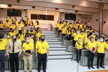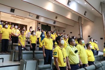 พล.ต.ท.พรชัย สุธีรคุณ ผู้อำนวยการ มว. ประธานในพิธีถวายสัตย์ปฏิญาณเพื่อเป็นพนักงานของรัฐที่ดีและพลังของแผ่นดิน ประจำปี 2566 ในโอกาสนี้ผู้บริหารและพนักงาน มว. ร่วมกล่าวคำถวายสัตย์ปฏิญาณเพื่อแสดงความจงรักภักดี สำนึกในพระมหากรุณาธิคุณอย่างหาที่สุดมิได้ และแสดงความมุ่งมั่นแน่วแน่ที่จะเป็นพนักงานของรัฐที่ดีและพลังของแผ่นดิน ปฏิบัติหน้าที่ตามรอยพระยุคลบาท ในฐานพนักงานของรัฐ ให้เกิดประโยชน์สุขแก่ประชาชนของประเทศชาติสืบไป แล้วจึงร่วมร้องเพลงสรรเสริญพระบารมี และเพลงสดุดีจอมราชาโดยพร้อมเพรียงกัน ณ อาคารสำนักงานกลาง (มว.) คลองห้า จังหวัดปทุมธานี