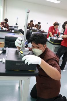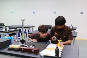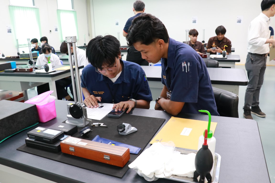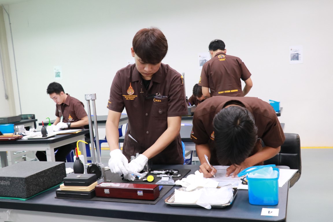 ดร.จริยา บัวเจริญ หัวหน้าฝ่ายมาตรวิทยามิติ พร้อมด้วย ดร.มูฮัมหมัด หมัดเด็น หัวหน้าห้องปฏิบัติการรูปร่าง ดร.ธรรมรัตน์ สมทอง หัวหน้าห้องปฏิบัติการพื้นผิว นางสาวปนัดดา สละชีพ นักมาตรวิทยาปฏิบัติการ ฝ่ายมาตรวิทยามิติ สถาบันมาตรวิทยาแห่งชาติ (มว.) ร่วมเป็นกรรมการในการแข่งขันมาตรวิทยาด้านมิติ ในการแข่งขันราชมงคลวิชาการวิศวกรรมระดับชาติ ครั้งที่ 14 โดยการแข่งขันในครั้งนี้มีคณะกรรมการตัดสินจากสถาบันมาตรวิทยาแห่งชาติ (มว.) บริษัทมิตูโตโย (ประเทศไทย) จำกัด และบริษัท สุมิพล คอร์ปอเรชั่น จำกัด และอาจารย์จากสาขาวิชาวิศวกรรมอุตสาหการด้วย วัตถุประสงค์ของการจัดงานในครั้งนี้เพื่อเป็นเวทีให้นักศึกษาในคณะวิศวกรรมศาสตร์ ได้นำความรู้ความสามารถมาร่วมแข่งขัน โดยการแข่งขันดังกล่าว เข้าร่วมแข่งขันโดยกลุ่มเครือข่ายวิศวกรรมศาสตร์ของ มทร. 9 แห่งด้วยกัน ผลการแข่งขันมาตรวิทยาด้านมิติ ลำดับที่ 1 คือ มหาวิทยาลัยเทคโนโลยีราชมงคลล้านนา ลำดับที่ 2 คือ มหาวิทยาลัยเทคโนโลยีราชมงคลอีสาน (ขอนแก่น) และลำดับที่ 3 คือ มหาวิทยาลัยเทคโนโลยีราชมงคลอีสาน (นครราชสีมา) การแข่งขันในครั้งนี้จัดขึ้น ณ อาคาร Machine Tool FAB. LAB. มหาวิทยาลัยเทคโนโลยีราชมงคลธัญบุรี คลองหก จังหวัดปทุมธานี