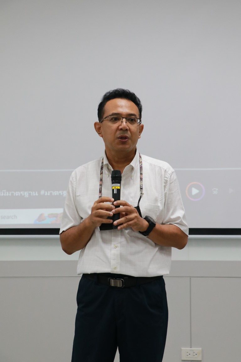 - นายสุรเชษฐ เพิ่มฉลาด นักมาตรวิทยา ฝ่ายมาตรวิทยาไฟฟ้า กล่าวต้อนรับคณะเยี่ยมชมจากมหาวิทยาลัยคริสเตียน