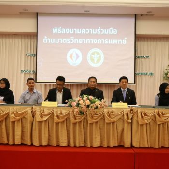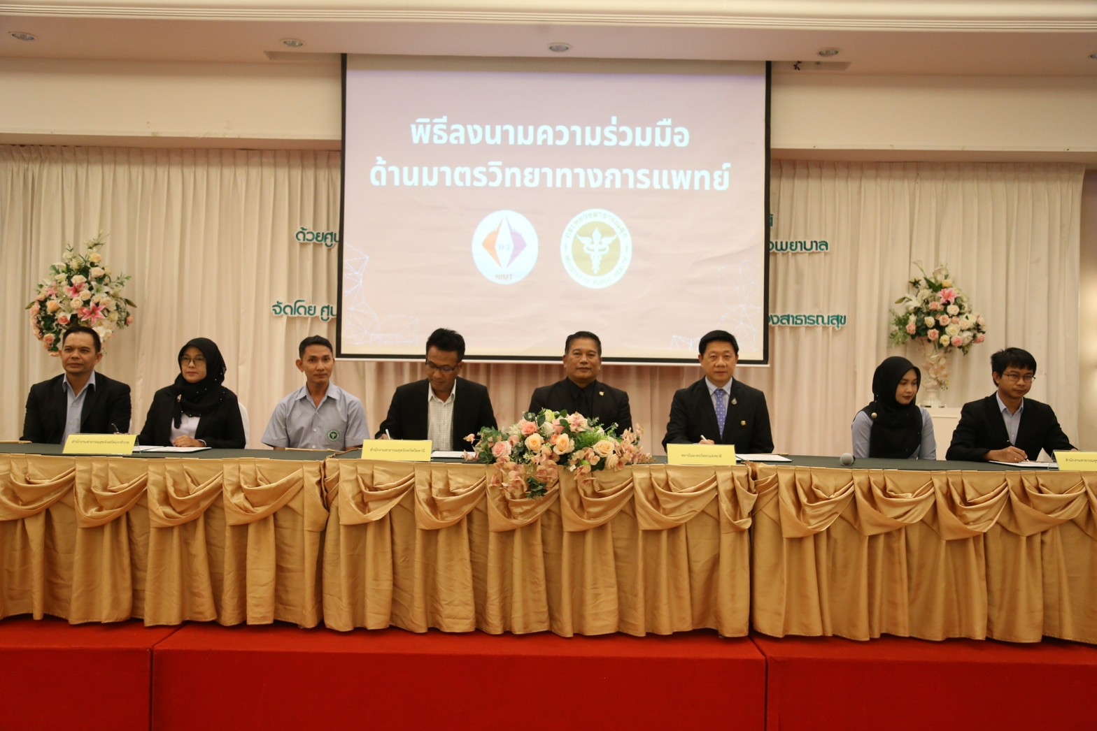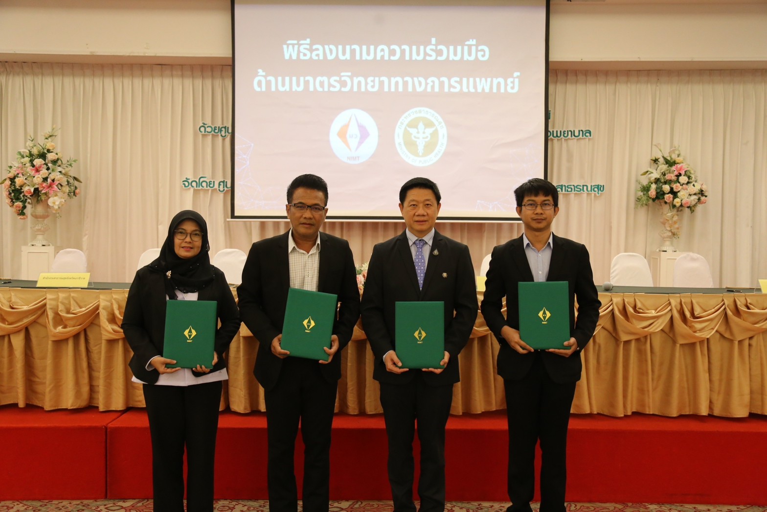 เมื่อวันที่ 17 สิงหาคม 2566 พล.ต.ท. พรชัย สุธีรคุณ ผู้อำนวยการสถาบันมาตรวิทยาแห่งชาติ (มว.) พร้อมด้วยนายอนุรักษ์ สารภาพ นายแพทย์สาธารณสุขจังหวัดปัตตานี นายวิเศษ สิริทรโสภณ นายแพทย์สาธารณสุขจังหวัดยะลา และนายชัยวัฒน์ พัฒนาพิศาลศักดิ์ นายแพทย์สาธารณสุขจังหวัดนราธิวาส ร่วมลงนามบันทึกข้อตกลงความร่วมมือด้านมาตรวิทยา โดยมีวัตถุประสงค์ เพื่อร่วมกันพัฒนาและแลกเปลี่ยนองค์ความรู้ ถ่ายทอดความรู้และเทคโนโลยีด้านมาตรวิทยา ตลอดจนพัฒนาทักษะการสอบเทียบมาตรฐานการวัดแก่บุคลากรของทุกฝ่าย รวมไปถึงร่วมกันสนับสนุนด้านมาตรวิทยา ในการพัฒนาความสามารถงานอุปกรณ์ทางการแพทย์ ของสำนักงานสาธารณสุขจังหวัด 3 จังหวัดชายแดนใต้ (ปัตตานี ยะลา นราธิวาส) ไปสู่มาตรฐานสากลและเป็นที่ยอมรับในระดับระหว่างประเทศ พร้อมทั้งร่วมกันวิจัยและพัฒนาด้านมาตรวิทยา และสร้างนวัตกรรมให้เกิดขึ้นอย่างเป็นรูปธรรม ณ โรงแรมกรีนเวิลด์ พาเลซ จังหวัดสงขลา