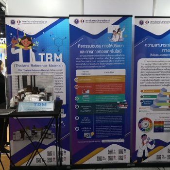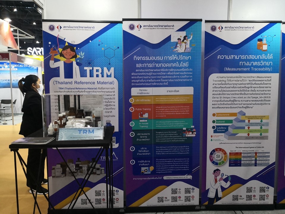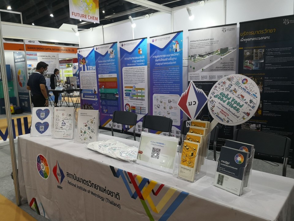 ในโอกาสนี้ มว. ร่วมจัดนิทรรศการแสดงผลงานด้านมาตรวิทยาในการพัฒนามาตรฐานการวัด การผลิตและเพิ่มศักยภาพให้กับห้องปฏิบัติการและภาคอุตสาหกรรม รวมไปถึงผลงานวัสดุอ้างอิงทางเคมี Thailand Reference Material : TRM เพื่อให้บริการและรองรับงานวิจัยด้านอาหารที่สามารถสร้างมูลค่าเพิ่มด้วยมาตรฐานสากลที่แสดงถึงศักยภาพด้านการวัดของประเทศ ในแนวคิด “ความสามารถทางการวัด เพื่อห่วงโซ่คุณค่าการผลิตอาหาร” อาทิ การตรวจสารปนเปื้อนในอาหาร (Food contaminants), อนุภาคพอลิสไตรีน สำหรับการวัดค่า PM2.5 และไมโครพลาสติก, การฆ่าเชื้อด้วย Sterilization, บริการมาตรวิทยา เพื่ออุตสาหกรรมอาหาร, ผลักดันข้าวสู่นวัตกรรมอาหารแห่งอนาคต เพื่อให้เข้าถึงกลุ่มเป้าหมายภาคอุตสาหกรรม และผู้ใช้งานบริการห้องปฏิบัติการทางวิทยาศาสตร์ เพื่อให้บรรลุวัตถุประสงค์ในการนำงานมาตรวิทยาไปประยุกต์ใช้เพื่อการมีคุณภาพชีวิตที่ดี ความปลอดภัย ความเป็นธรรม และสุขอนามัยของประชาชน