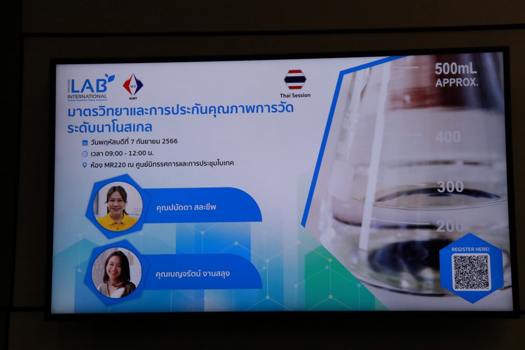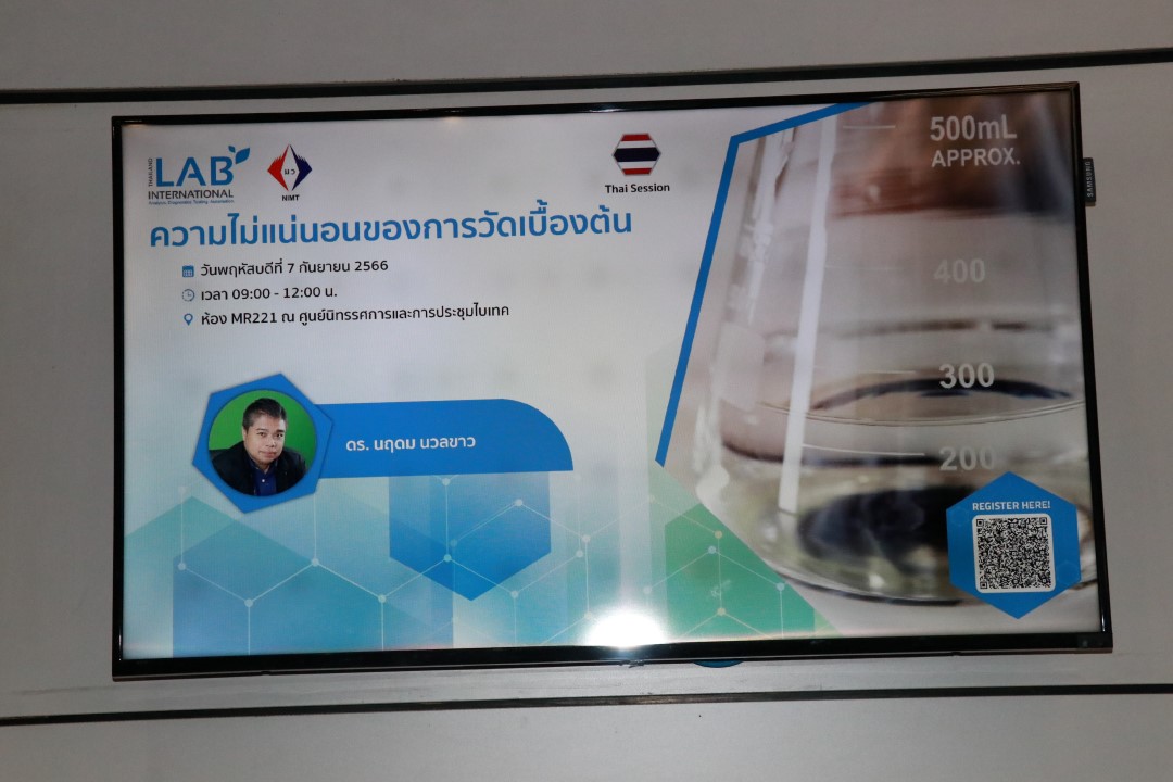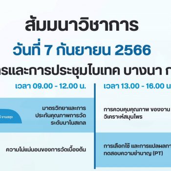 นอกจากนี้ ในวันที่ 7 กันยายน 2566 มว.ยังได้ร่วมจัดสัมมนาให้ความรู้ด้านมาตรวิทยากับภาครัฐและภาคเอกชน จำนวน 4 หัวข้อได้แก่ 1.ความไม่แน่นอนของการวัดเบื้องต้น บรรยายโดย ดร.นฤดม นวลขาว 2. มาตรวิทยาและการประกันคุณภาพการวัดระดับนาโนสเกล บรรยายโดย คุณปนัดดา สละชีพ และคุณเบญจรัตน์งานสลุง 3. การเลือกใช้ และการแปลผลการทดสอบความชำนาญ (PT) บรรยายโดย ดร.สุทธินันท์ แต่บรรพกุล และ 4.การควบคุมคุณภาพของงานวิเคราะห์สมุนไพร บรรยายโดย คุณพรหทัย กันแก้ว ณ ศูนย์นิทรรศการและการประชุมไบเทค บางนา กรุงเทพฯ