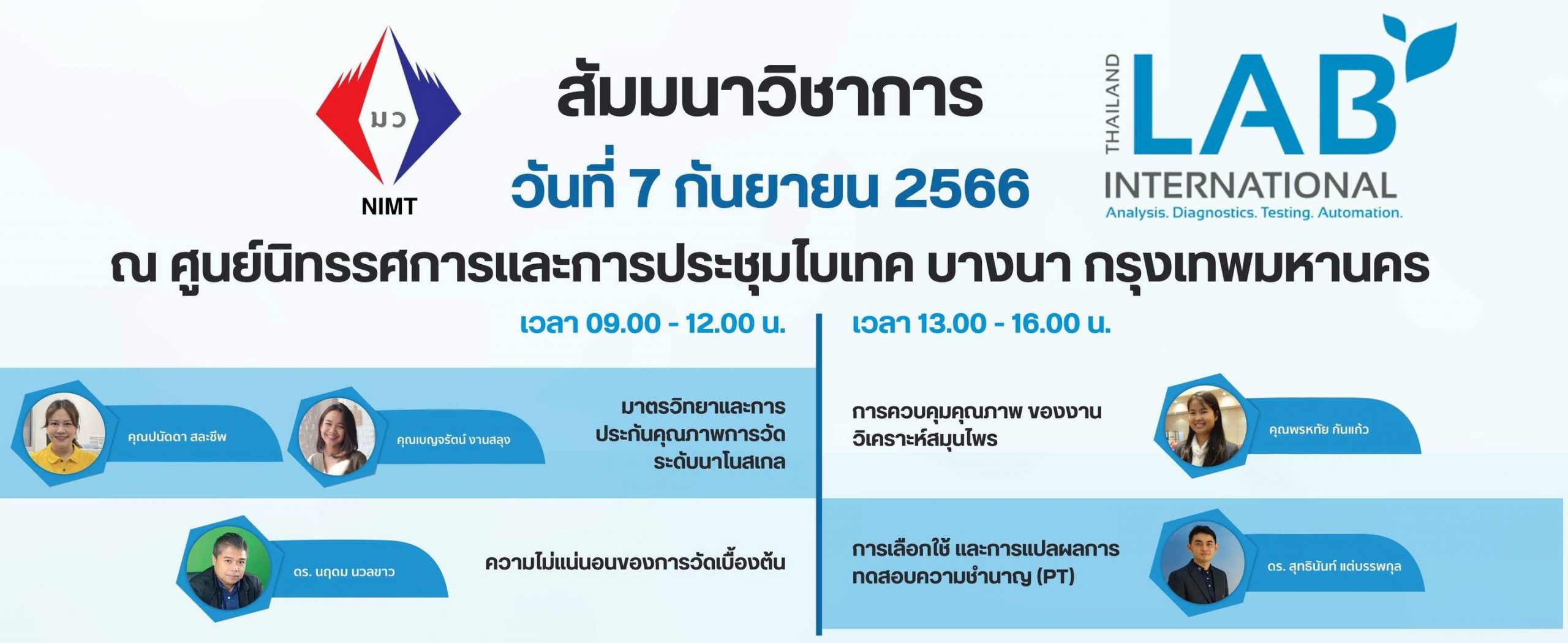 ดร.จรัญ ยะฝา ผู้ช่วยผู้อำนวยการ สถาบันมาตรวิทยาแห่งชาติ (มว.) เข้าร่วมพิธีเปิดงาน Thailand LAB INTERNATIONAL 2023 ซึ่งภายในงานมีผู้แทนจากหน่วยงานสำคัญต่างๆ โดย ดร.จิตติ์พร ธรรมจินดา ผู้อำนวยการศูนย์ความเป็นเลิศด้านชีววิทยาศาสตร์ คุณภูริพันธ์ บุนนาค รองผู้อำนวยการ ผู้อำนวยการสำนักงานส่งเสริมการจัดประชุมและนิทรรศการ (องค์การมหาชน) คุณยงยุทธ กิดาธนพนต์ นายกสมาคมการค้าวิทยาศาสตร์ และเทคโนโลยี และ Mr. Igor Jan Palka กรรมการผู้จัดการ บริษัท วีเอ็นยู เอเชีย แปซิฟิค จำกัด ในฐานะผู้จัดงาน ร่วมให้ข้อมูลและไฮไลท์สำคัญของการจัดงานปีนี้ นอกจากนี้ยังได้รับเกียรติจาก ศาสตราจารย์เกียรติคุณ ดร. นายแพทย์ประสิทธิ์ วัฒนาภา ผู้อำนวยการโรงพยาบาลจุฬาภรณ์และประธานกรรมการศูนย์ความเป็นเลิศด้านชีววิทยาศาสตร์ ร่วมปาฐกถาพิเศษเรื่อง Life Sciences Outlook