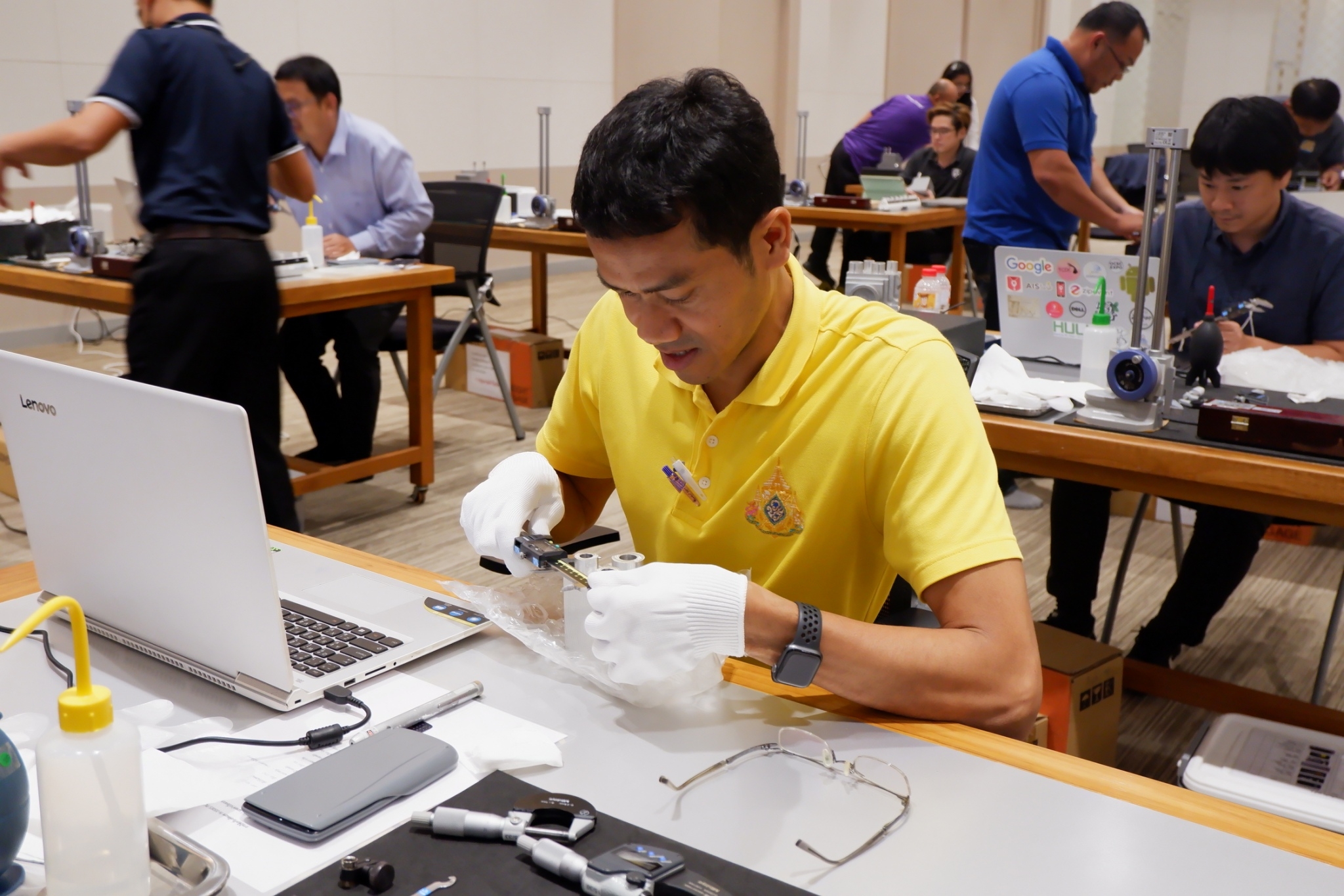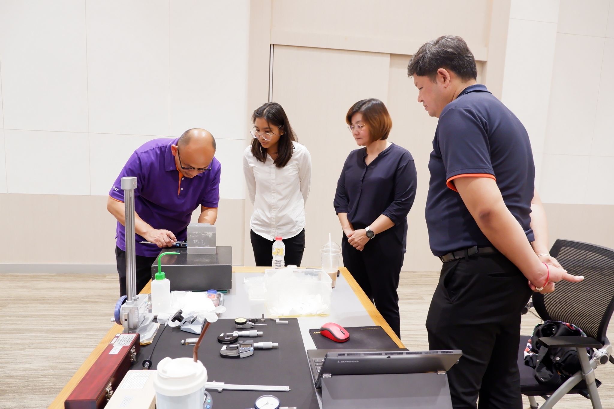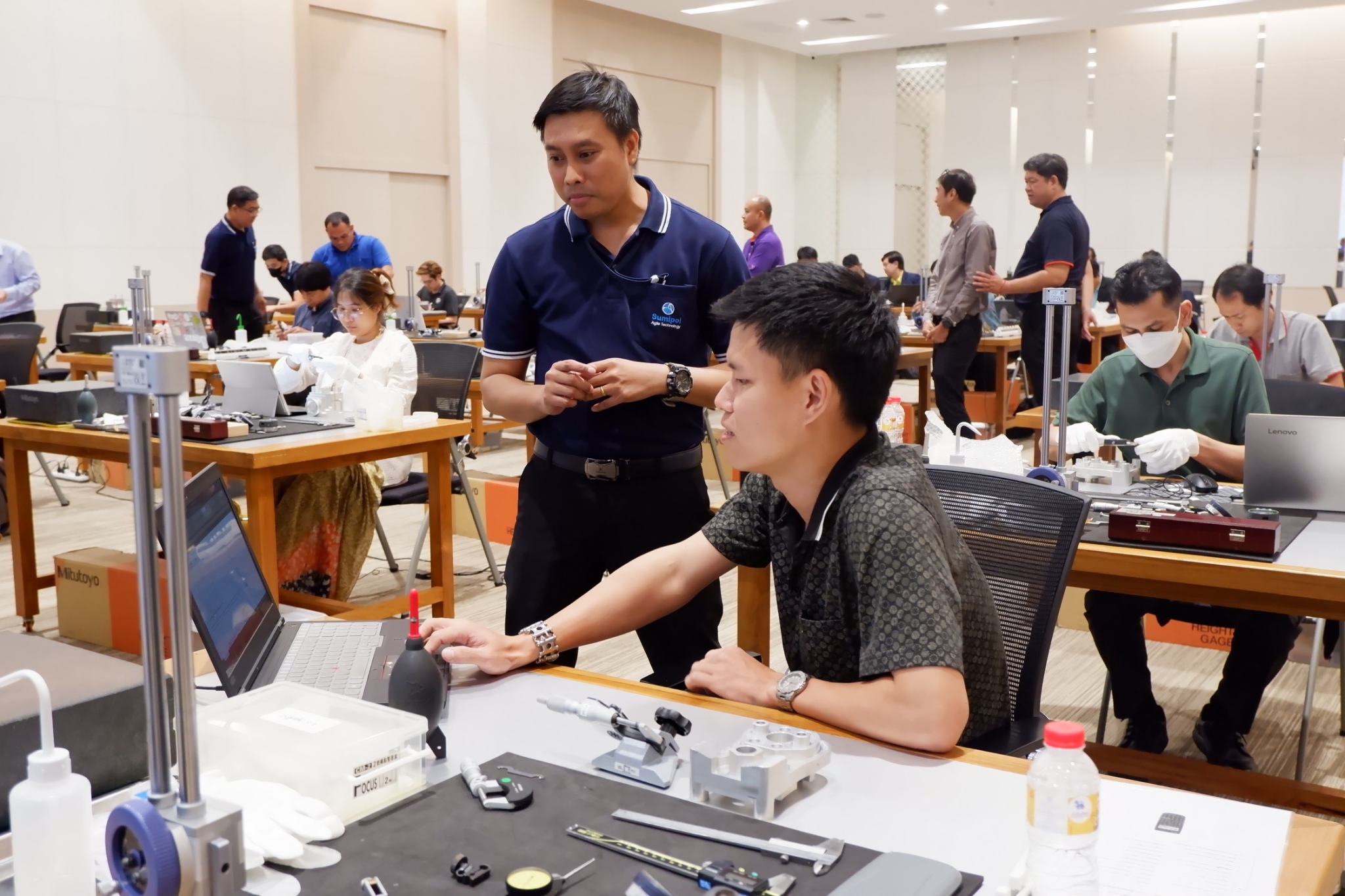 ฝ่ายมาตรวิทยามิติ สถาบันมาตรวิทยาแห่งชาติ (มว.) ร่วมกับคณะวิศวกรรมศาสตร์ มหาวิทยาลัยเทคโนโลยีราชมงคลรัตนโกสินทร์ สถาบันเทคโนโลยีการผลิตสุมิพล (SIMTEC) และบริษัท มิตูโตโย (ประเทศไทย) จำกัด จัดโครงการฝึกอบรมเพื่อพัฒนาศักยภาพให้กับบุคลากรทางการศึกษาคณะวิศวกรรมศาสตร์ มหาวิทยาลัยเทคโนโลยีราชมงคลรัตนโกสินทร์ ในหลักสูตร “การใช้ การดูแลรักษาและการซ่อมแซมเครื่องมือวัดด้านมิติเบื้องต้น” ระหว่างวันที่ 4 – 6 ตุลาคม 2566 โดยมีวัตถุประสงค์ในการเสริมความรู้และทักษะ ตลอดจนการจัดการพัฒนาหลักสูตรให้เป็นไปตามมาตรฐานและนวัตกรรมเทคโนโลยีการวัดให้สอดคล้องกับอุตสาหกรรมการผลิตยุคใหม่ ทั้งนี้เพื่อให้บุคลากรภาคการศึกษามีความรู้ ความเข้าใจที่ถูกต้องด้านการวัดและสามารถส่งต่อองค์ความรู้ไปยังผู้ที่เกี่ยวข้องได้อย่างเป็นรูปธรรมต่อไป ณ สถาบันเทคโนโลยีการผลิตสุมิพล (SIMTEC) จ.ชลบุรี