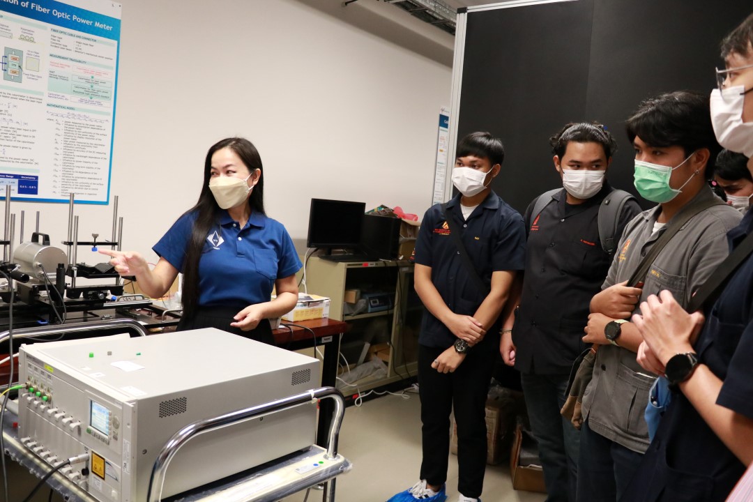 นายสุรเชษฐ เพิ่มฉลาด นักมาตรวิทยา ฝ่ายมาตรวิทยาไฟฟ้า สถาบันมาตรวิทยาแห่งชาติ (มว.) ให้การต้อนรับนักศึกษาและอาจารย์จากภาควิชาเทคโนโลยีวิศวกรรมอิเล็กทรอนิกส์ วิทยาลัยเทคโนโลยีอุตสาหกรรม มหาวิทยาลัยเทคโนโลยีพระจอมเกล้า พระนครเหนือ ในโอกาสเข้าเยี่ยมชมห้องปฏิบัติการของสถาบัน ซึ่งตามโครงสร้างหลักสูตร นักศึกษาต้องออกฝึกงานในสถานประกอบการหรือหน่วยงานภายนอก เพื่อให้นักศึกษาได้เห็นถึงกระบวนการในการทำงานในสถาประกอบการหรือหน่วยงานต่าง ๆ ในการนี้ ทางภาควิชาเห็นว่า สถาบันมาตรวิทยาแห่งชาติ เป็นหน่วยงานที่มีประสิทธิภาพและสามารถให้ความรู้แก่นักศึกษาได้เป็นอย่างดี จึงได้ขอความอนุเคราะห์นำนักศึกษาเข้าศึกษาดูงาน โดยมีวัตถุประสงค์เพื่อให้นักศึกษาได้มีความรู้ ความเข้าใจ พร้อมเพิ่มทักษะทางด้านการใช้เครื่องมือวัดจากการเยี่ยมชมห้องปฏิบัติการของสถาบัน กิจกรรมดังกล่าวจัดขึ้น ณ อาคารสำนักงานกลาง และอาคารผดุงมาตร (มว.) คลองห้า จังหวัดปทุมธานี