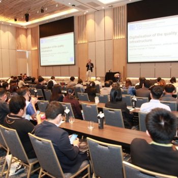 ดร.จรัญ ยะฝา ผู้ช่วยผู้อํานวยการสถาบันมาตรวิทยาแห่งชาติ เป็นประธานกล่าวต้อนรับ และได้รับเกียรติวิทยากรบรรยายพิเศษจาก Dr Sascha Eichstädt, Chair of IMEKO TC6 and of OIML DTG สหพันธ์สาธารณรัฐเยอรมนี ในหัวข้อ “Importance of Digital transformation of NQI” รวมทั้งการอภิปรายกลุ่มและนำเสนอ เรื่อง แผนการดำเนินงานด้านดิจิทัลของหน่วยงานภายใต้ NQI, เทคโนโยลีและข้อมูลที่สำคัญเพื่อการพัฒนา NQI ไปสู่รูปแบบดิจิทัล, ขั้นตอน/กระบวนการใน NQI เพื่อการเปลี่ยนแปลงทางดิจิทัล, แผนการพัฒนาโครงสร้างพื้นฐานทางคุณภาพของประเทศไปสู่รูปแบบดิจิทัลเพื่อจัดทําข้อเสนอโครงการ และสรุปแผนการพัฒนาโครงสร้างพื้นฐานทางคุณภาพของประเทศไปสู่รูปแบบดิจิทัลต่อไป