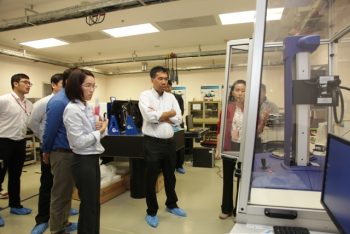 นายประยูร เชี่ยววัฒนา ผู้อำนวยการ มว. เป็นประธานในการต้อนรับคณะผู้บริหารและนักวิจัยจาก SCG Chemical ในโอกาสเข้าเยี่ยมชมห้องปฏิบัติการของสถาบัน โดยมีวัตถุประสงค์เพื่อให้การวิจัยและพัฒนาด้านมาตรวิทยาเกิดประสิทธิภาพสูงสุดเป็นประโยชน์ต่อผู้ผลิตในภาคอุตสาหกรรมอย่างเป็นรูปธรรม และทำให้ความต้องการของผู้ประกอบการในการยกระดับคุณภาพสินค้าในกระบวนผลิตได้รับการตอบสนองตรงตามความต้องการของตลาด โดยจะมุ่งเน้นการวิจัยและพัฒนาด้านมาตรวิทยาในการสนับสนุนงานวิจัยและพัฒนาด้านวัสดุศาสตร์ สนับสนุนแนวคิดด้านการประหยัดพลังงาน พร้อมทั้งยังเป็นการสอดรับกับโมเดลการพัฒนาประเทศไทย 4.0 การเปลี่ยนแปลงโครงสร้างเศรษฐกิจไปสู่เศรษฐกิจที่ขับเคลื่อนด้วยนวัตกรรม ณ อาคารผดุงมาตร มว. จ.ปทุมธานี