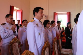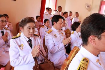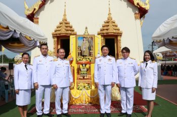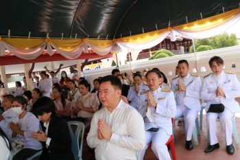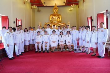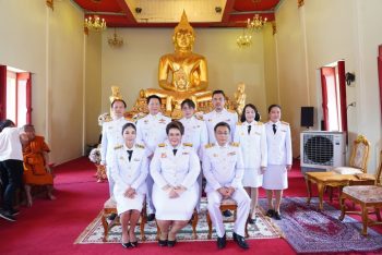- ผมว. ถ่ายรูปร่วมกับพนักงานที่ไปร่วมในพิธี