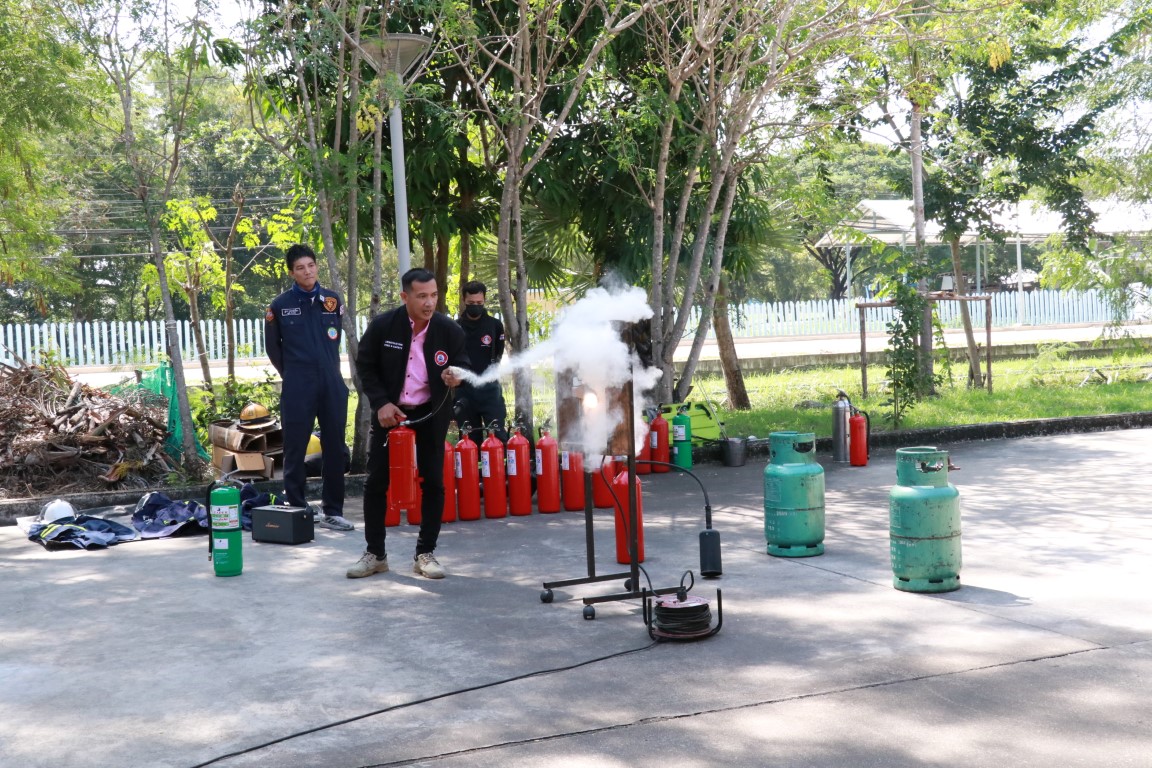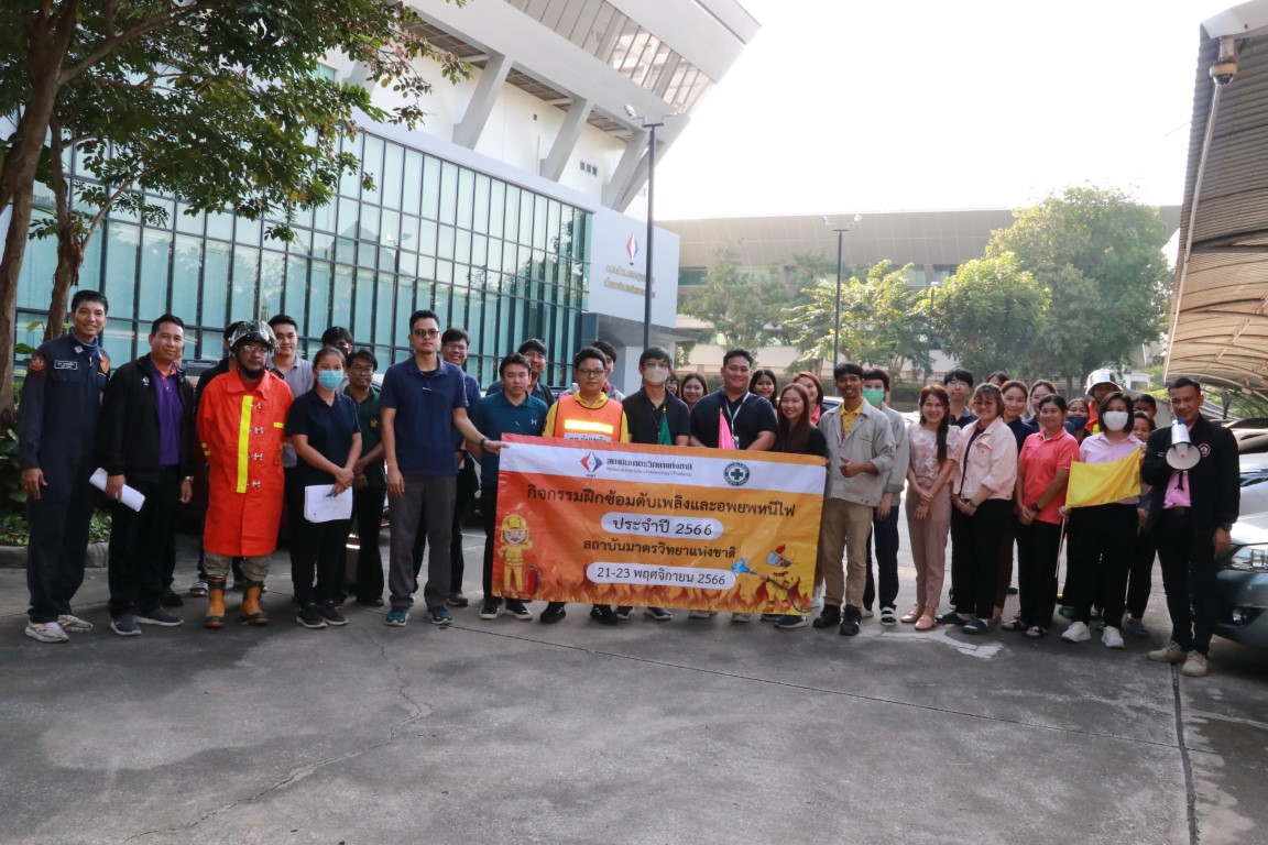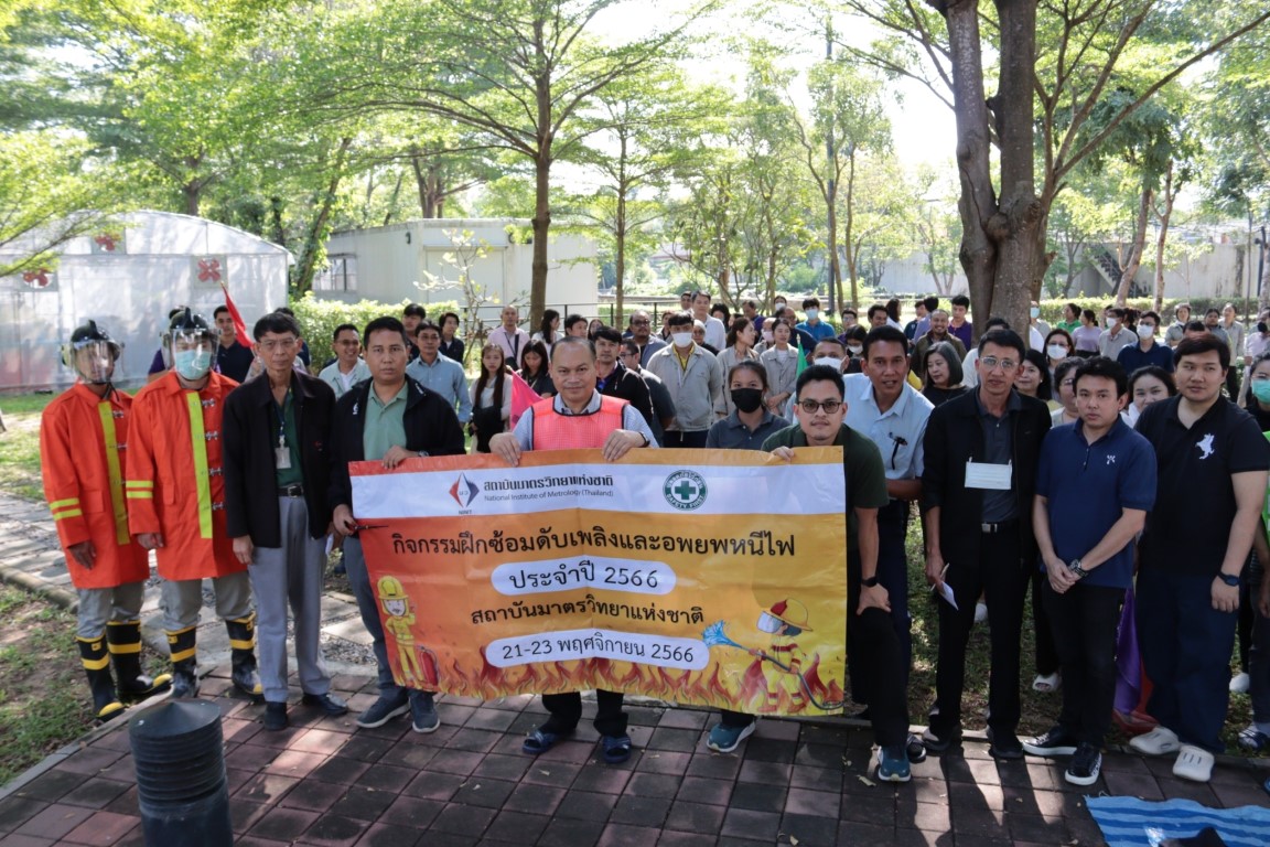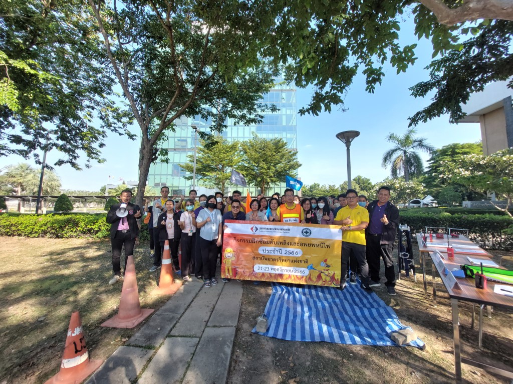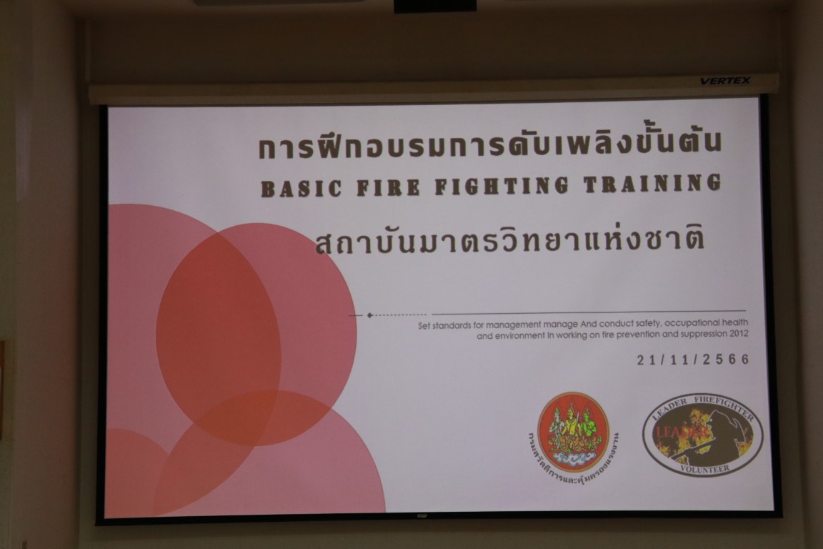 ดร.จรัญ ยะฝา ผู้ช่วยผู้อำนวยการ มว. ประธานเปิดการจัดอบรมกิจกรรม การซ้อมดับเพลิงและฝึกซ้อมหนีไฟ ประจำปี 2566 โดยมีนายสมภพ สุกมาก วิทยากรฝึกอบรม/ครูฝึก จากบริษัท ลีดเดอร์ไฟร์เซฟตี้ จำกัด พร้อมทีมงาน มาบรรยายให้ความรู้เกี่ยวกับการทฤษฎีการเกิดเหตุเพลิงไหม้ การแบ่งประเภทของเพลิง และวิธีการดับเพลิงประเภทต่างๆ เครื่องดับเพลิงชนิดต่างๆ รวมทั้งการอพยพหนีไฟ วิธีการหนีไฟ และการปฐมพยาบาลที่ถูกต้องแก่พนักงาน มว. เพื่อให้พนักงานเกิดความตระหนักและมีความพร้อมในการระงับเหตุ รวมทั้งช่วยเหลือตัวเองได้อย่างปลอดภัยเมื่อเกิดอัคคีภัย โดยกิจกรรมดังกล่าวจัดขึ้น ณ อาคารสำนักงานกลาง อาคารมาตรธำรง อาคารพัฒนาระบบราง อาคารผดุงมาตร (มว.) คลองห้า จังหวัดปทุมธานี และอาคารเสียงและการสั่นสะเทือน ถนนโยธี กรุงเทพฯ