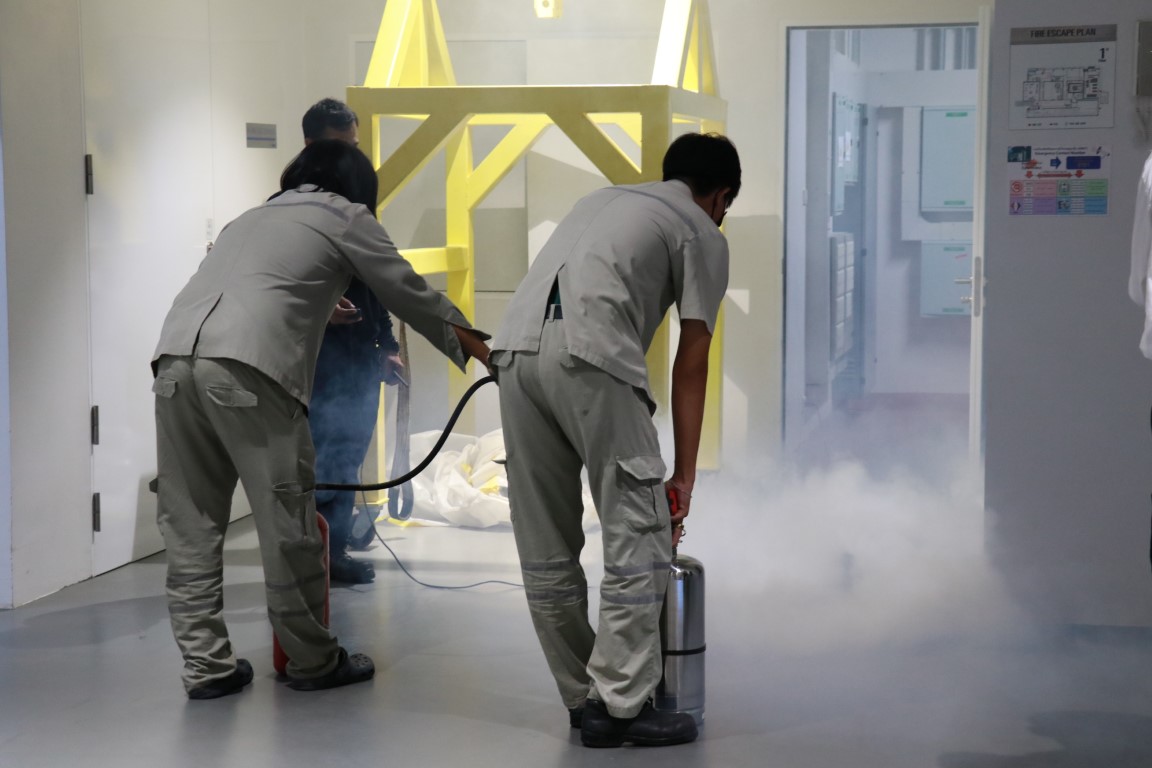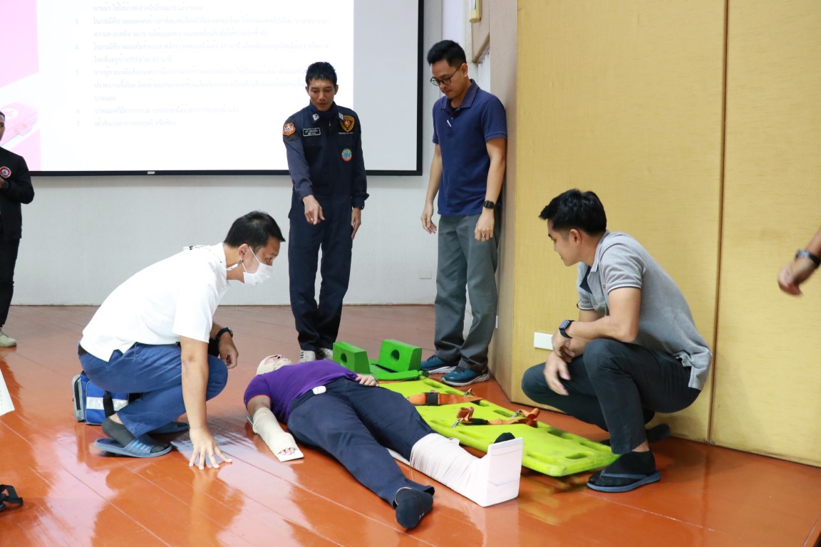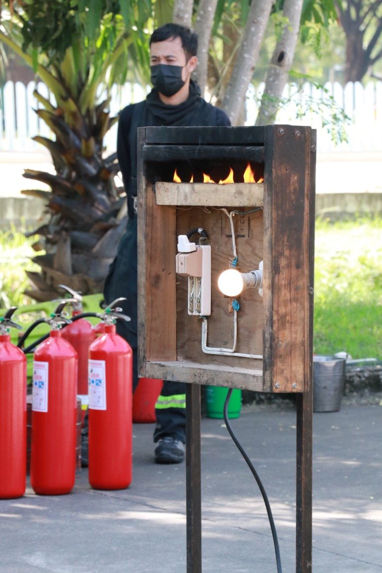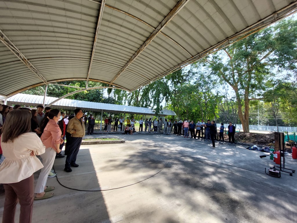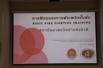 ดร.จรัญ ยะฝา ผู้ช่วยผู้อำนวยการ มว. ประธานเปิดการจัดอบรมกิจกรรม การซ้อมดับเพลิงและฝึกซ้อมหนีไฟ ประจำปี 2566 โดยมีนายสมภพ สุกมาก วิทยากรฝึกอบรม/ครูฝึก จากบริษัท ลีดเดอร์ไฟร์เซฟตี้ จำกัด พร้อมทีมงาน มาบรรยายให้ความรู้เกี่ยวกับการทฤษฎีการเกิดเหตุเพลิงไหม้ การแบ่งประเภทของเพลิง และวิธีการดับเพลิงประเภทต่างๆ เครื่องดับเพลิงชนิดต่างๆ รวมทั้งการอพยพหนีไฟ วิธีการหนีไฟ และการปฐมพยาบาลที่ถูกต้องแก่พนักงาน มว. เพื่อให้พนักงานเกิดความตระหนักและมีความพร้อมในการระงับเหตุ รวมทั้งช่วยเหลือตัวเองได้อย่างปลอดภัยเมื่อเกิดอัคคีภัย โดยกิจกรรมดังกล่าวจัดขึ้น ณ อาคารสำนักงานกลาง อาคารมาตรธำรง อาคารพัฒนาระบบราง อาคารผดุงมาตร (มว.) คลองห้า จังหวัดปทุมธานี และอาคารเสียงและการสั่นสะเทือน ถนนโยธี กรุงเทพฯ