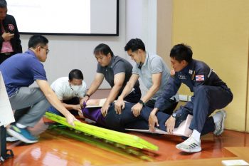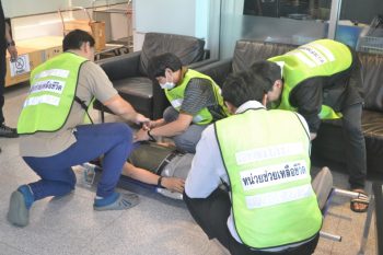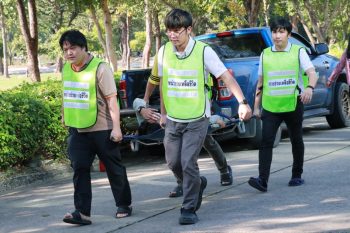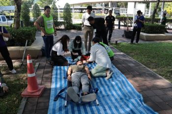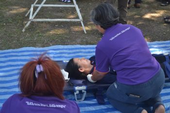 - บรรยากาศในการปฐมพยาบาลผู้ติดค้าง
