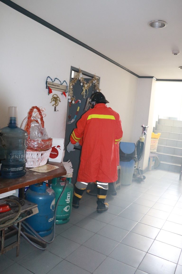 - ผู้ประสบเหตุปิดประตูห้องเกิดเหตุเพื่อป้องกันควันไฟ