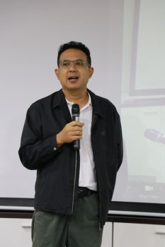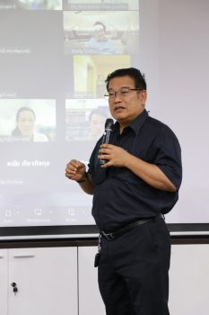 - นายสุรเชษฐ เพิ่มฉลาด คณะทำงานด้านการจัดการพลังงาน มว. กล่าวต้อนรับ