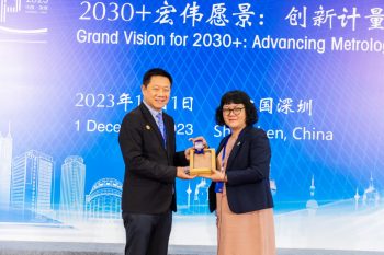 พล.ต.ท.นพ.พรชัย สุธีรคุณ ผู้อำนวยการ มว. พร้อมด้วยผู้บริหาร เข้าร่วมในพิธีลงนามบันทึกความเข้าใจระหว่าง สถาบันมาตรวิทยาแห่งชาติ (มว.) และ Vietnam Metrology Institute (VMI) โดย Dr. Ngo Thi Ngoc Ha, VMI Director โดยมีวัตถุประสงค์เพื่อกระชับความสัมพันธ์ระหว่าง มว. และ VMI ส่งเสริมการแลกเปลี่ยนความรู้และเพิ่มขีดความสามารถทางการวัด อันเป็นโอกาสดีที่ทำให้ทั้ง 2 ประเทศจะได้พัฒนาความก้าวหน้าทางด้านมาตรวิทยา เพื่อสนับสนุนประเทศของตนให้มีความเชื่อมั่น และมีประสิทธิภาพสูงสุด ในการให้บริการและเป็นสาธารณประโยชน์ต่อไป ซึ่งการลงนามบันทึกความเข้าใจนี้ ณ เมืองเซินเจิ้น สาธารณรัฐประชาชนจีน