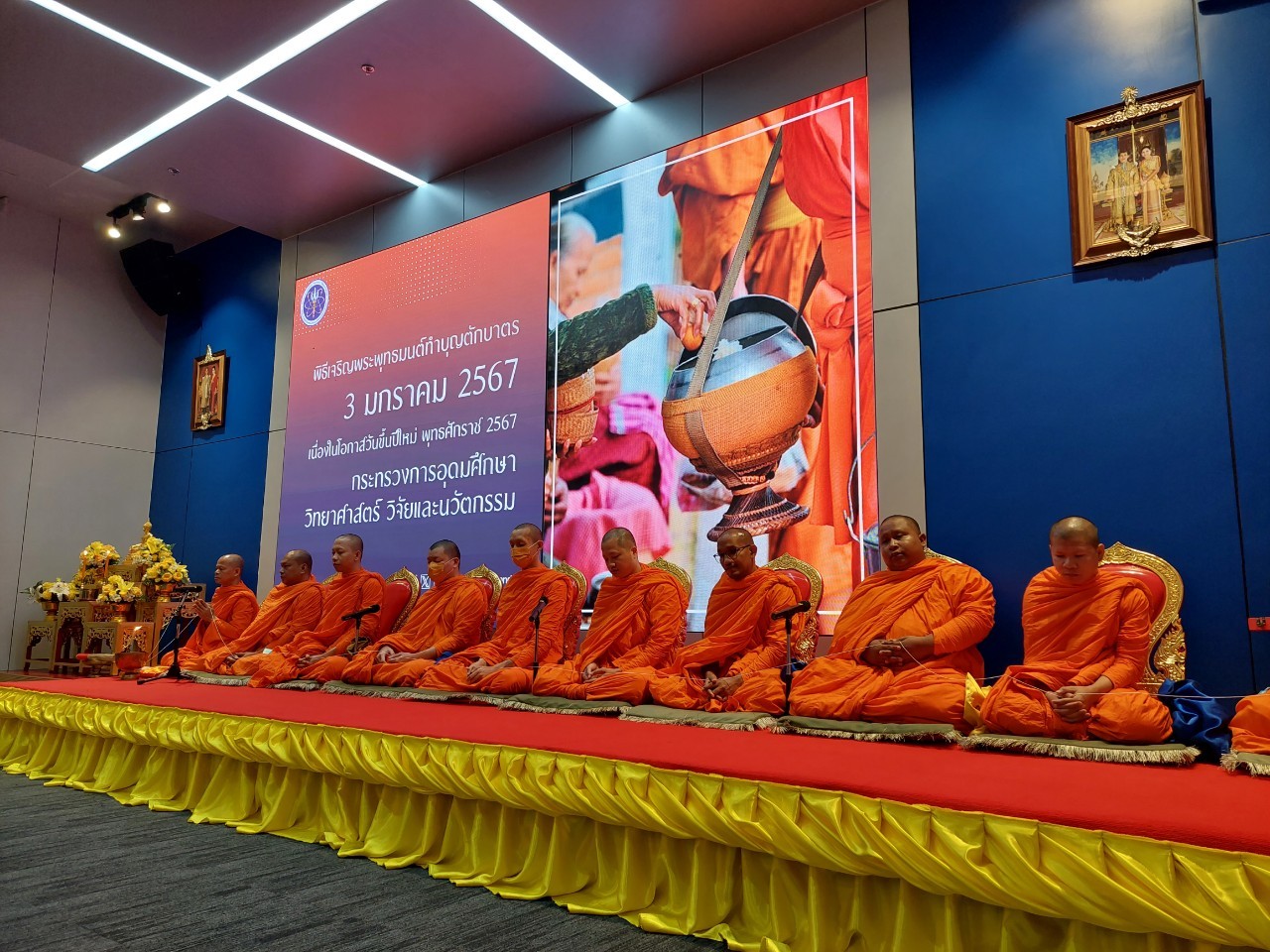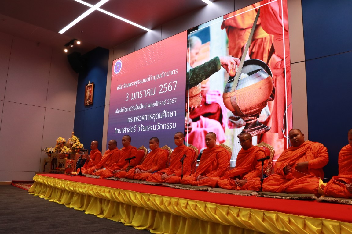 สำนักปลัดกระทรวงการอุดมศึกษา วิทยาศาสตร์ วิจัยและนวัตกรรม จัดพิธีทำบุญตักบาตรข้าวสารอาหารแห้ง เนื่องในโอกาสวันขึ้นปีใหม่ 2567 นำโดย นางสาวศุภมาส อิศรภักดี รัฐมนตรีว่าการกระทรวงการอุดมศึกษา วิทยาศาสตร์ วิจัยและนวัตกรรม พร้อมด้วย นายเพิ่มสุข สัจจาภิวัตน์ ปลัดกระทรวงการอุดมศึกษา วิทยาศาสตร์ วิจัยและนวัตกรรม คณะผู้บริหาร ข้าราชการ และเจ้าหน้าที่จากหน่วยงานต่างๆ ภายใต้กระทรวง อว. ในการนี้ พล.ต.ท.พรชัย สุธีรคุณ ผู้อำนวยการ สถาบันมาตรวิทยาแห่งชาติ (มว.) พร้อมด้วยนางสุรัตน์ ลีอุดมวงษ์ รักษาการหัวหน้ากลุ่มงานเสียงและการสั่นสะเทือน และพนักงานของสถาบันได้เข้าร่วมในพิธีดังกล่าวด้วย ณ ห้องโถงชั้น 1 อาคารพระจอมเกล้า และบริเวณหน้าอาคารพระจอมเกล้า สป.อว. ถนนโยธี กรุงเทพฯ