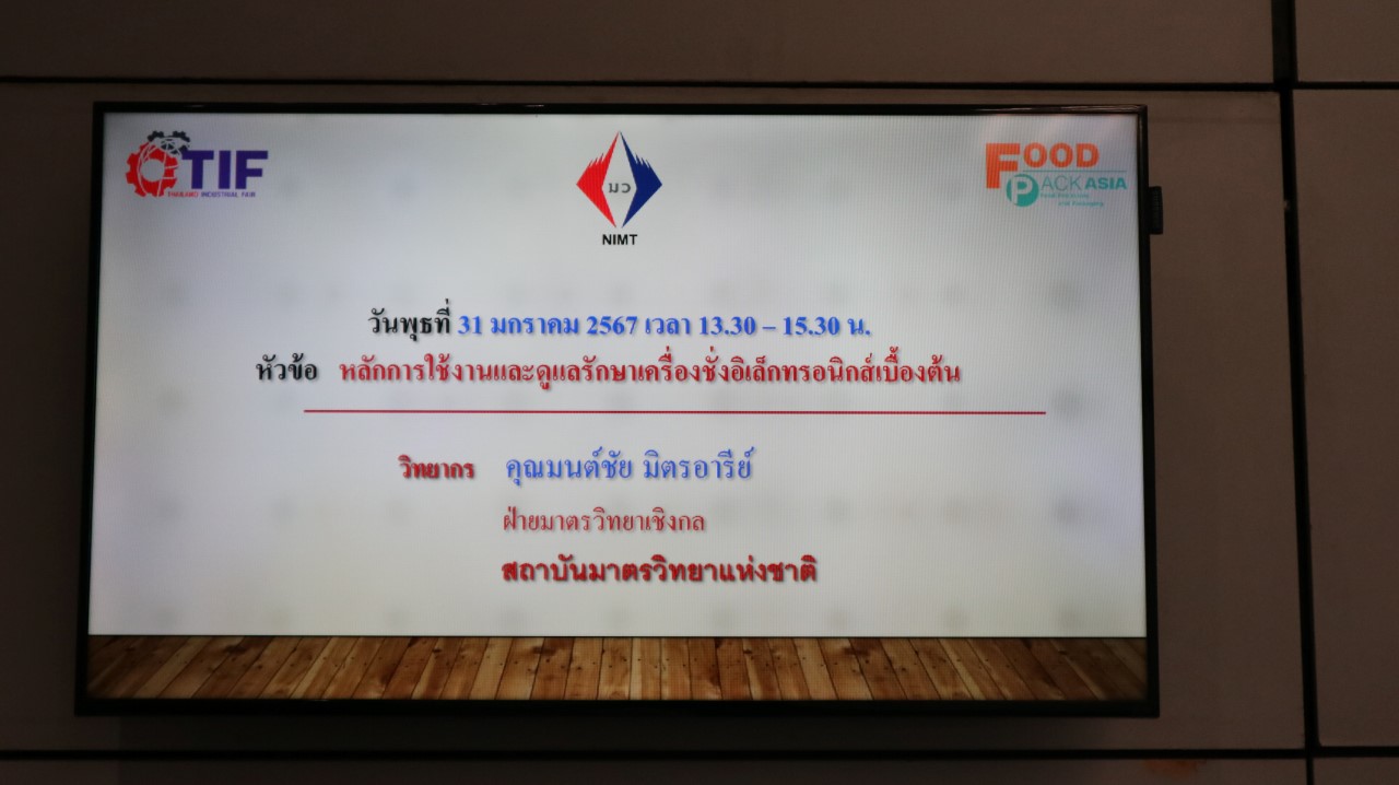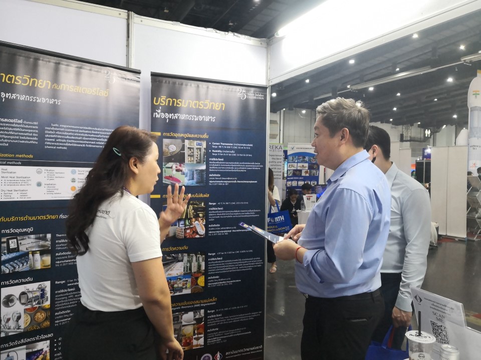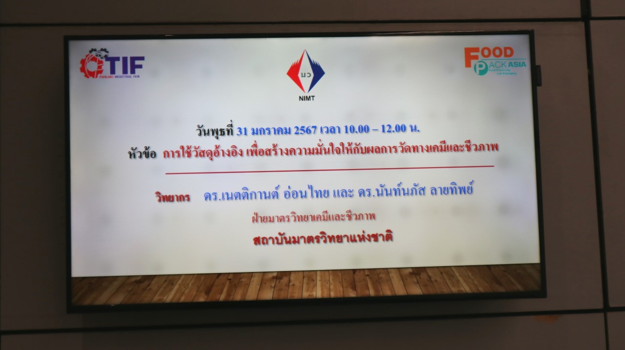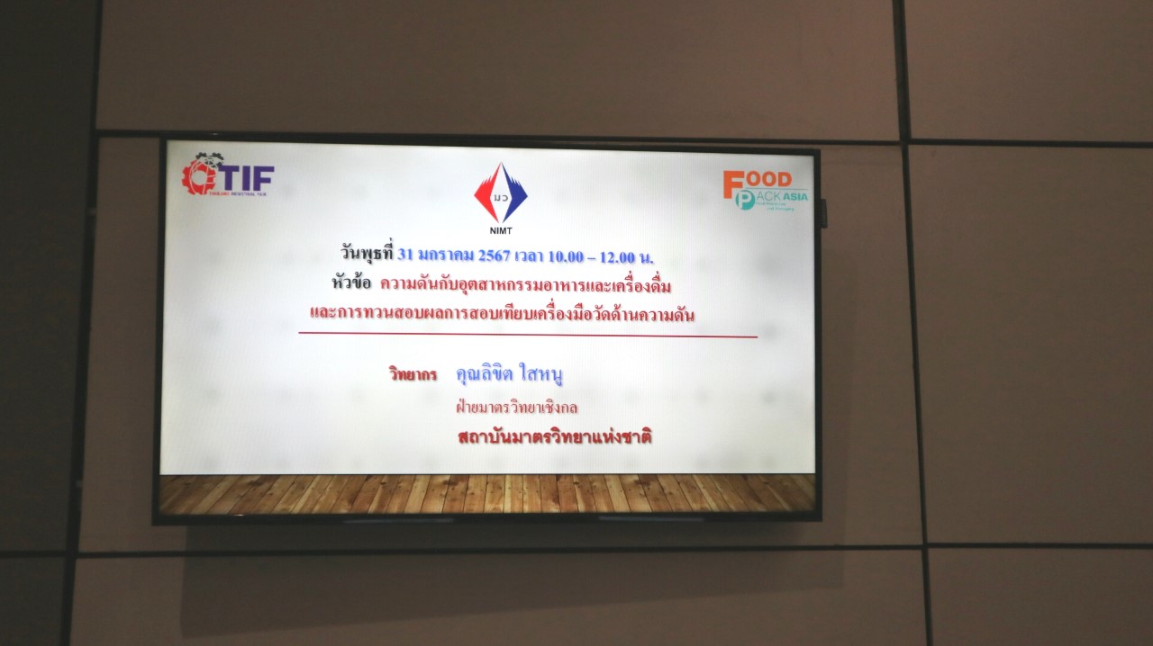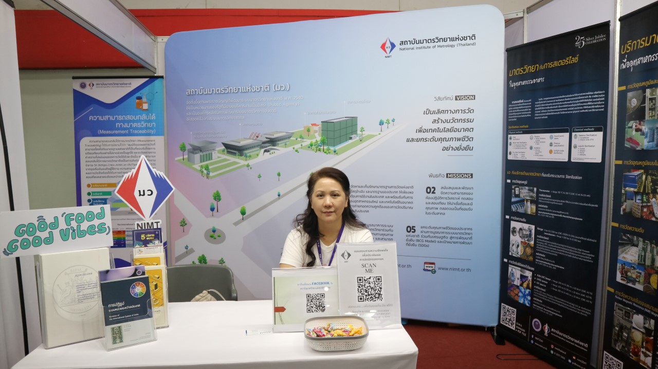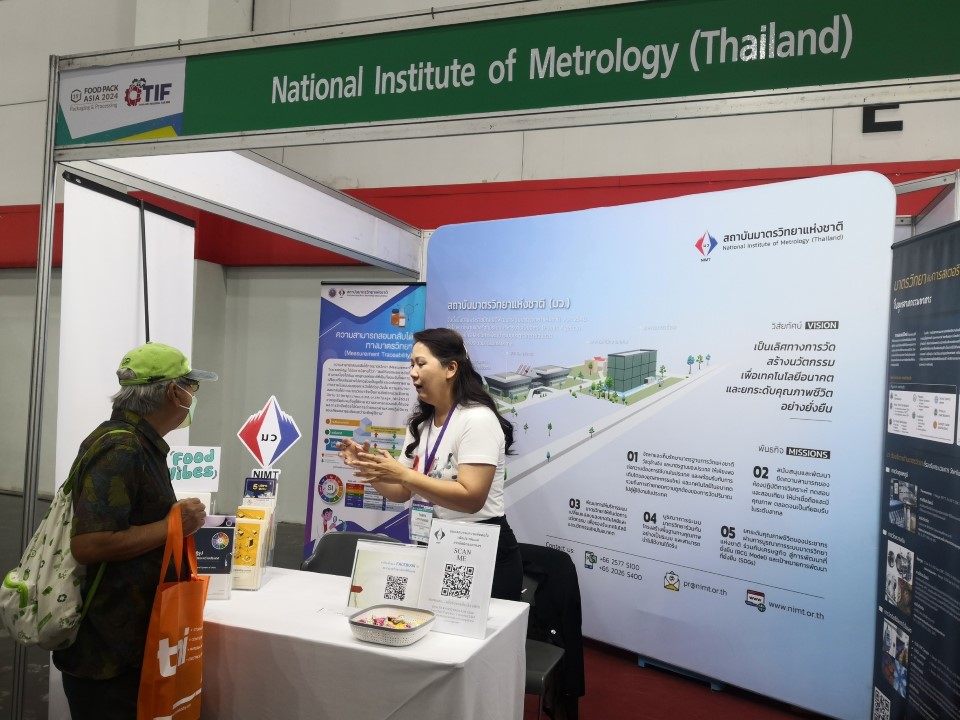 สถาบันมาตรวิทยาแห่งชาติ (มว.) เข้าร่วมการจัดนิทรรศการในงาน TIF & Food Pack Asia 2024 ที่เป็นงานแสดงเทคโนโลยี เครื่องจักร เครื่องมือ อุปกรณ์เครื่องใช้ การบริการเพื่ออุตสาหกรรมการผลิต นวัตกรรม สินค้าและบริการด้านโลจิสติกส์ครบวงจร รวมทั้งการแสดงเทคโนโลยีและนวัตกรรมสำหรับอุตสาหกรรมอาหารและเครื่องดื่ม โดย มว.ได้นำเสนอนิทรรศการความรู้ด้านมาตรวิทยา เรื่อง มาตรวิทยา.. กับการสเตอริไลซ์ในอุตสาหกรรมอาหาร และบริการมาตรวิทยา…เพื่ออุตสาหกรรมอาหาร นอกจากนี้ยังได้แนะนำงานบริการต่างๆของสถาบัน รวมไปถึงประชาสัมพันธ์ช่องทางการติดต่อสื่อสารระหว่างสถาบันกับผู้ใช้บริการให้สามารถเชื่อมต่อถึงกันได้สะดวกมากขึ้น อาทิ website, facebook, Youtube, Instragram Tiktok เป็นต้น