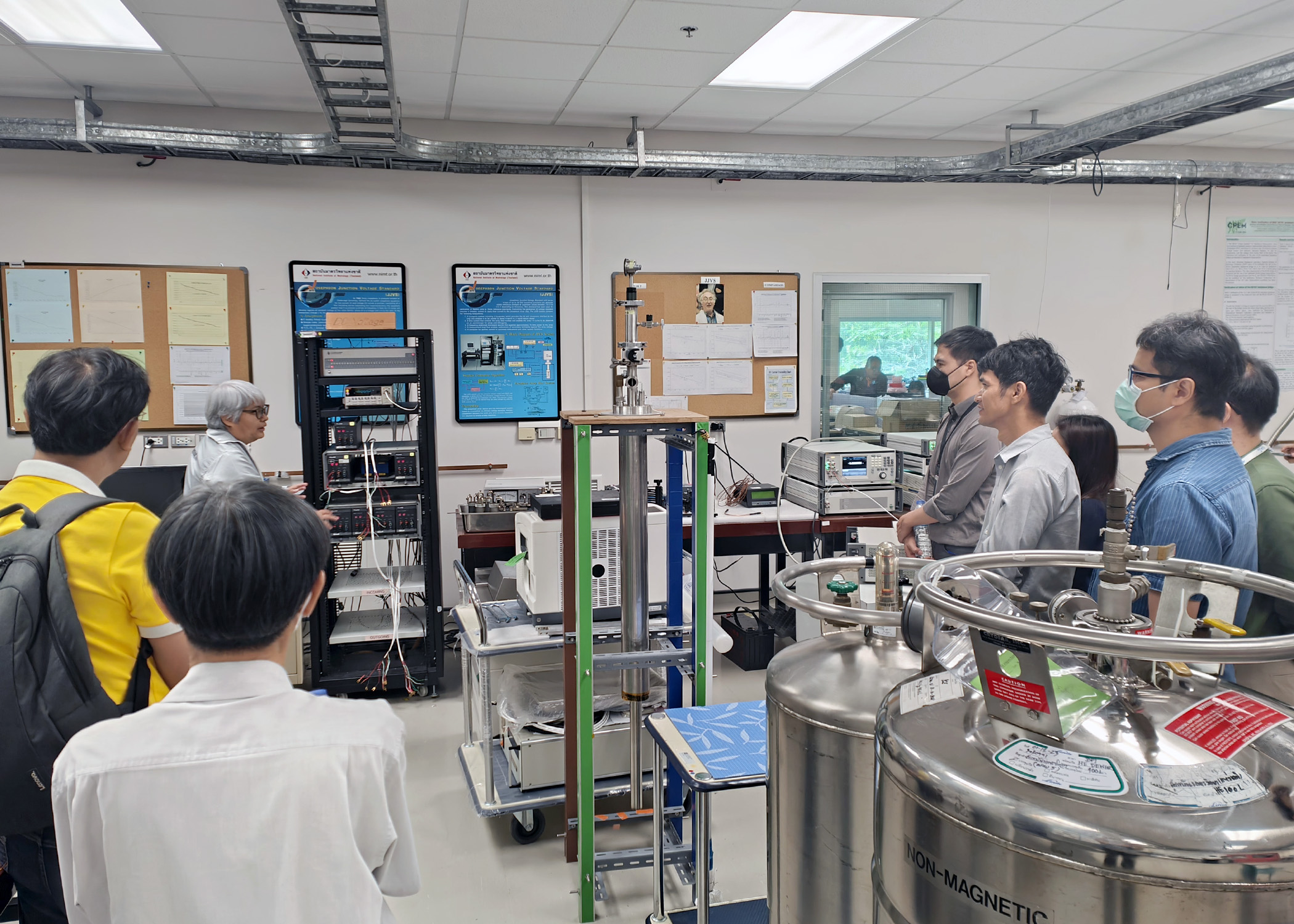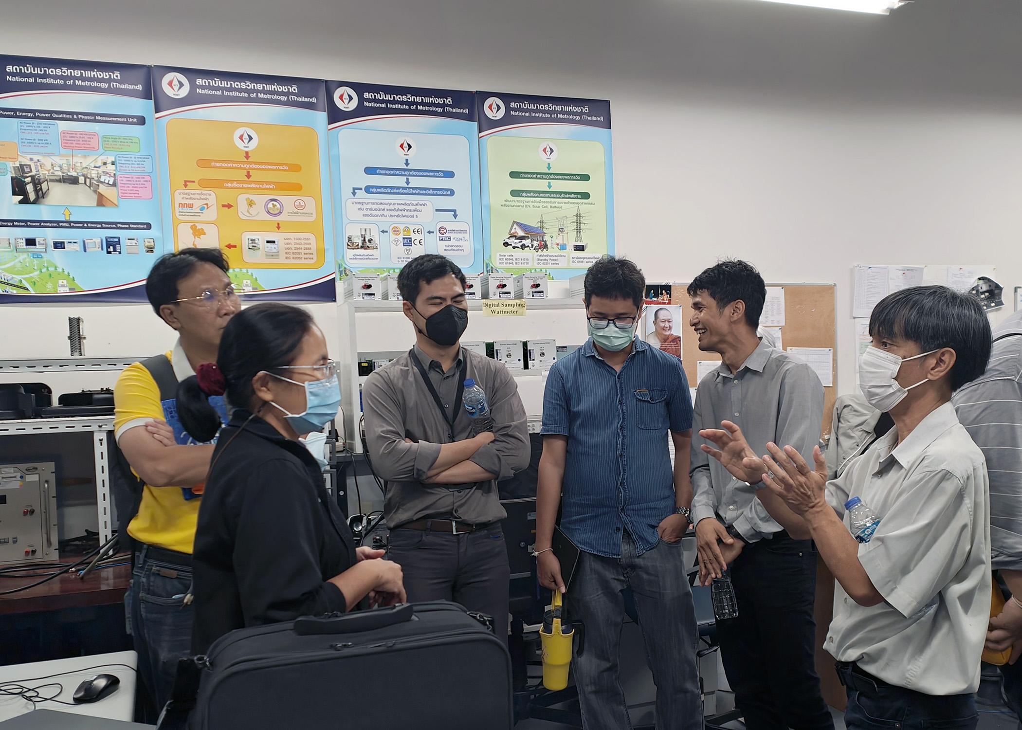 5 กุมภาพันธ์ 2567 – ดร.สิวินีย์ สวัสดิ์อารี หัวหน้าฝ่ายมาตรวิทยาไฟฟ้า พร้อมด้วยทีมนักมาตรวิทยา ฝ่ายมาตรวิทยาไฟฟ้า และฝ่ายมาตรวิทยาเคมีและชีวภาพ ให้การต้อนรับทีมนักวิจัยจากศูนย์เทคโนโลยีพลังงานแห่งชาติ (ENTEC) ทีมนักวิจัยจากศูนย์เทคโนโลยีโลหะและวัสดุแห่งชาติ (MTEC) และทีมนักวิจัยจากศูนย์เทคโนโลยีอิเล็กทรอนิกส์และคอมพิวเตอร์แห่งชาติ (NECTEC) สำนักงานพัฒนาวิทยาศาสตร์และเทคโนโลยีแห่งชาติ (สวทช.) ในโอกาสเข้าเยี่ยมชมห้องปฏิบัติการของสถาบัน และหารือความร่วมมือในการนำมาตรวิทยาไปสนับสนุนงานวิจัยและการพัฒนาเทคโนโลยีเพื่อรองรับอุตสาหกรรมยานยนต์ไฟฟ้า ณ สถาบันมาตรวิทยาแห่งชาติ เทคโนธานี คลองห้า จังหวัดปทุมธานี