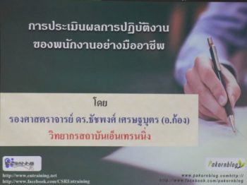 - วิทยากร : รศ.ดร.ธัชพงศ์ เศรษฐบุตร วิทยากร/ผู้เชี่ยวชาญ จากสถาบันฝึกอบรมเอ็นเทรนนิ่ง