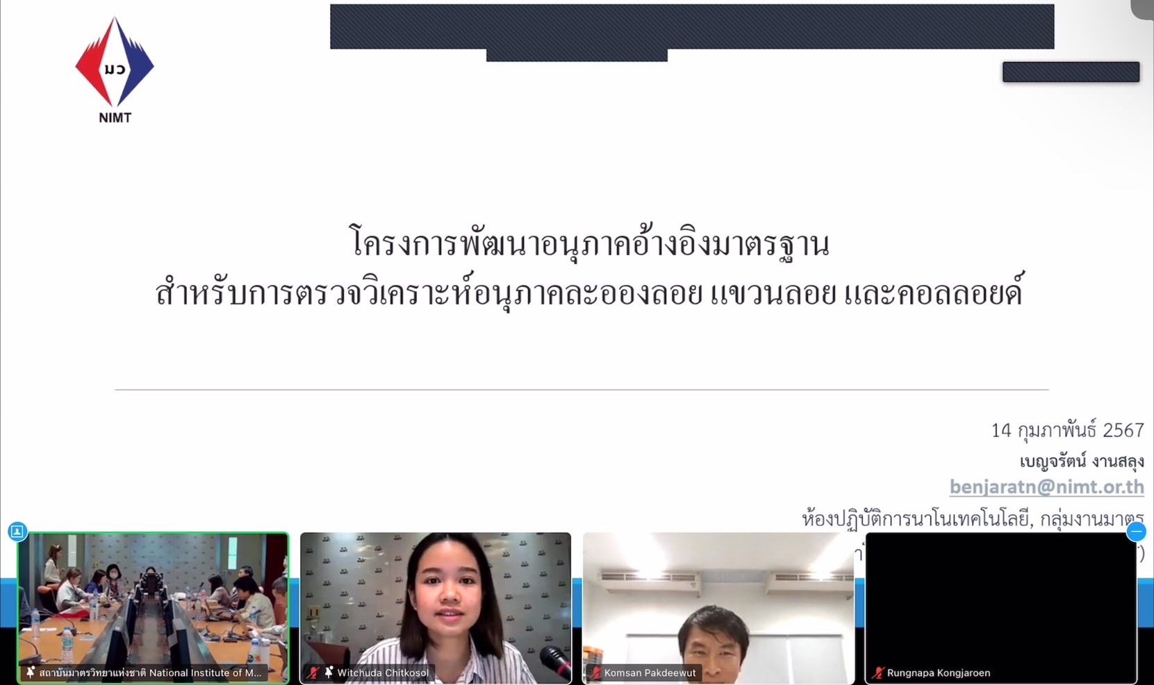 นายศมน เพี้ยงบางยาง รักษาการหัวหน้าฝ่ายมาตรวิทยามิติ เป็นประธานเปิดการประชุมชมรมมาตรวิทยามิติ ครั้งที่ 1/2567 ซึ่งจัดขึ้น ณ อาคารผดุงมาตร สถาบันมาตรวิทยาแห่งชาติ (มว.) คลองห้า จังหวัดปทุมธานี และในรูปแบบออนไลน์ (Zoom) (มว.) คลองห้า จังหวัดปทุมธานี สรุปได้ดังนี้
