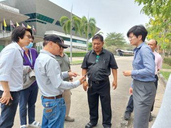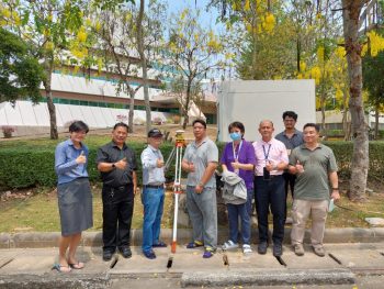 นายอนุสรณ์ ทนหมื่นไวย รองผู้อำนวยการ มว. พร้อมด้วย ดร.ทยาทิพย์ ทองตัน นักมาตรวิทยา ห้องปฏิบัติการเวลาและความถี่ ฝ่ายมาตรวิทยาไฟฟ้า คุณศมน เพี้ยงบางยาง รักษาการหัวหน้าฝ่ายมาตรวิทยามิติ คุณวัชรินทร์ สามิตร รักษาการกลุ่มงานวิศวกรรการวัดละเอียด ดร.กิตติสัณห์ มงคลสุทธิรัตน์ รักษาการหัวหน้ากลุ่มมาตรฐานปฐมภูมิความยาว คุณเจษฎา วงศาโรจน์ และ ดร.เกษญา วัชระนุกุล นักมาตรวิทยาฝ่ายมาตรวิทยามิติ รวมทั้งคุณพงษ์เทพ ภู่อุณฑะโร นักมาตรวิทยา กลุ่มงานถ่ายทอดค่ามาตรฐานและความชื้น ฝ่ายมาตรวิทยาอุณหภูมิและแสง ให้การต้อนรับ คุณประเสริฐ เวียงสุขไพบูลย์ จากบริษัท แนคคร่า ไมโครเทค จำกัด ในโอกาสเข้ามาหารือ GNSS แบบ low cost พร้อมทั้งบรรยายเรื่อง GNSS NRTK และ demo อุปกรณ์ หน้าอาคารผดุงมาตร (มว.) คลองห้า จังหวัดปทุมธานี