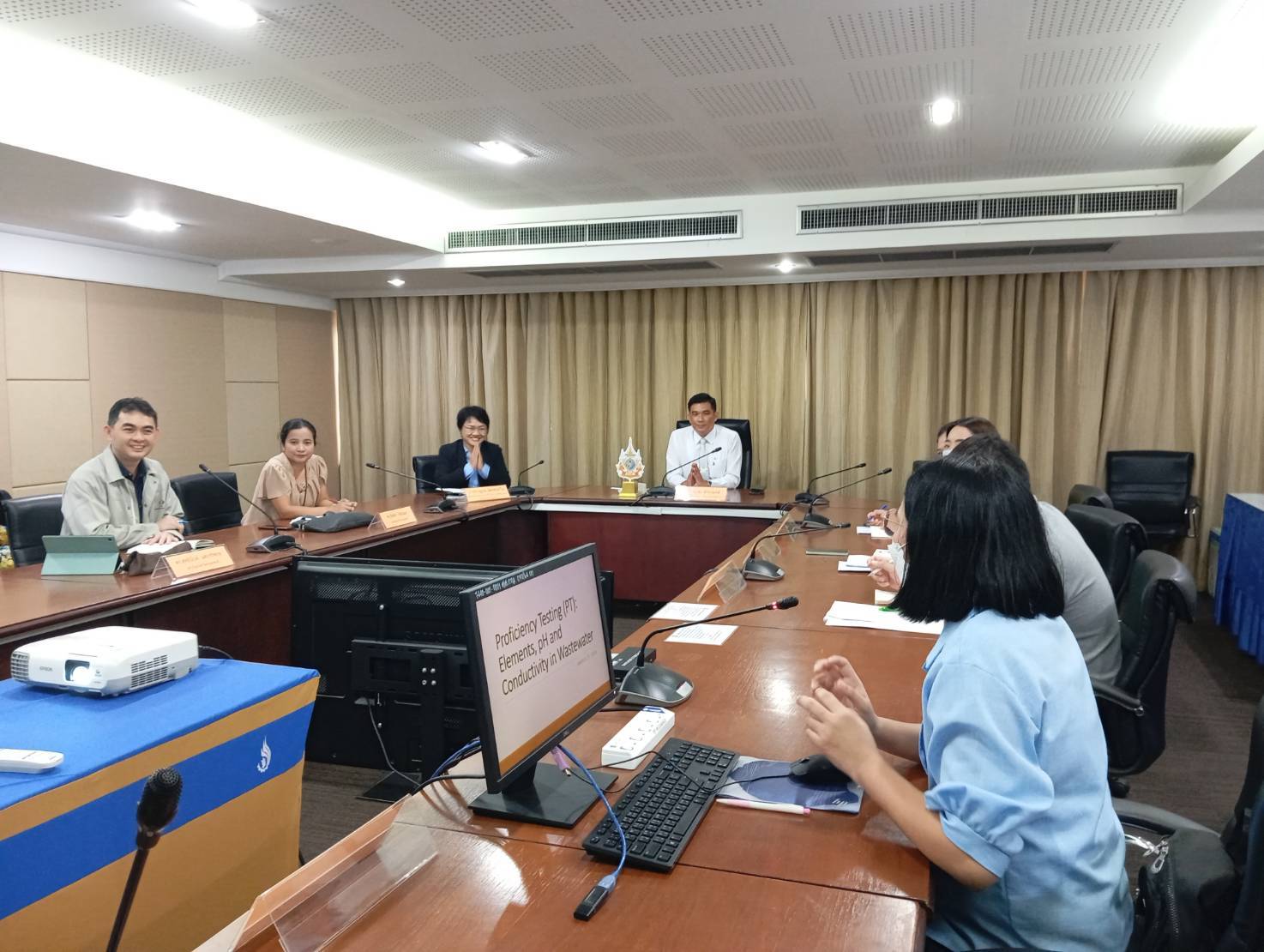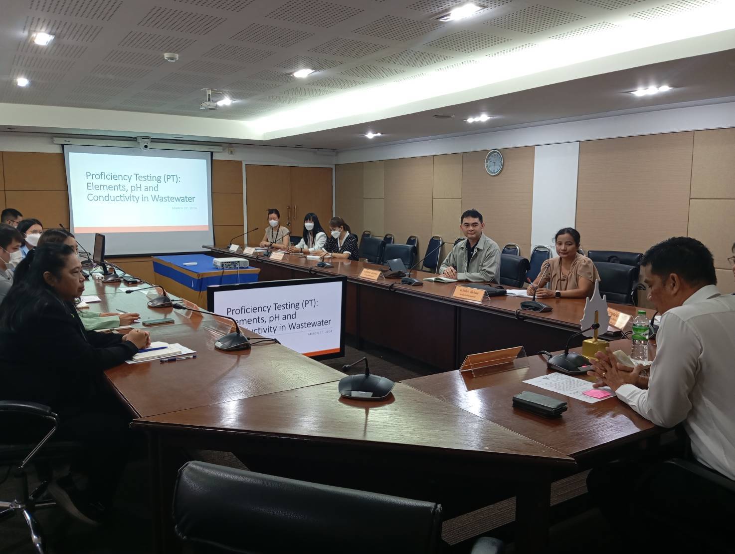 ดร.กิตติยา เชียร์แมน รักษาการหัวหน้าฝ่ายมาตรวิทยาเคมีและชีวภาพ พร้อมด้วยนักมาตรวิทยา จากกลุ่มงานวิเคราะห์อนินทรีย์เคมี ฝ่ายมาตรวิทยาเคมีและชีวภาพ มว. คุณเยาวลักษณ์ ชินชูศักดิ์ ผู้อำนวยการกองบริหารจัดการทดสอบความชำนาญ จากกรมวิทยาศาสตร์บริการ (วศ.) และคุณประสม ดำรงพงษ์ ผู้อำนวยการกองวิจัยและเตือนภัยมลพิษโรงงาน กรมโรงงานอุตสาหกรรม ร่วมหารือการบูรณาการหน่วยงานที่เกี่ยวข้องในการจัดโปรแกรมทดสอบความชำนาญ (Proficiency Testing : PT) รายการ Elements in Wastewater ให้กับห้องปฏิบัติการสิ่งแวดล้อมในประเทศไทย