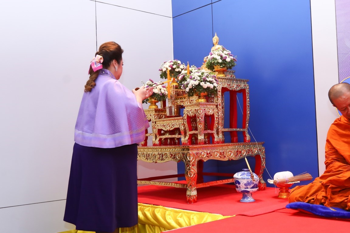 - นางสาวศุภมาส อิศรภักดี รมว. อว. ประธานในพิธีจุดธูปเทียนบูชาพระรัตนตรัย