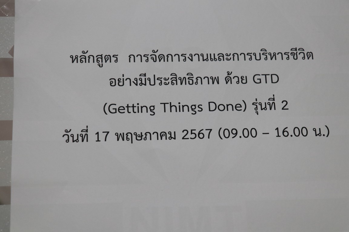 กระทรวงการอุดมศึกษา วิทยาศาสตร์ วิจัยและนวัตกรรม (อว.) โดยกลุ่มงานบริหารและพัฒนาทรัพยากรบุคคล ฝ่ายสำนักงานกลาง สถาบันมาตรวิทยาแห่งชาติ (มว.) จึงได้จัดอบรมหลักสูตร “การจัดการงานและการบริหารชีวิตอย่างมีประสิทธิภาพด้วย GTD (Getting Things Done) ได้รับเกียรติจาก รองศาสตราจารย์ดร.ฉัฐวีณ์ สิทธิ์ศิรอรรถ จากสถาบันเสริมศึกษาและทรัพยากรมนุษย์ มหาวิทยาลัยธรรมศาสตร์ มาบรรยายให้ความรู้แก่พนักงานสายวิชาการ ระดับชำนาญการ โดยวัตถุประสงค์ของการอบรมในหัวข้อนี้ เพื่อให้พนักงานได้รับทราบแนวคิด การนำเครื่องมือเพื่อช่วยจัดระบบความคิดในการทำงาน ให้มีประสิทธิภาพ และมีสุขภาวะที่ดีของพนักงานไปพร้อมๆ กัน (ส่งเสริมความคิดเชิงบวกและ happy workplace) ด้วยหลักการของ Getting Things Done (หลักสูตรมีการทำ workshop) “Soft Skill” เพื่อเพิ่มทักษะด้านต่าง ๆ ในการปฏิบัติงาน การติดต่อสื่อสาร การตัดสินใจ การทำงานเป็นทีมเวิร์คได้ดียิ่งขึ้น ที่มีความข้อกัน ทั้งนี้ หากปรับเปลี่ยนด้านใดด้านหนึ่งก็จะส่งเสริมให้ด้านอื่นๆ ดีขึ้นตามไปด้วย กิจกรรมการอบรมดังกล่าว จัดขึ้นทั้งในรูปแบบออนไลน์ และออนไซต์ ณ อาคารมาตรธำรง (มว.) คลองห้า จังหวัดปทุมธานี
