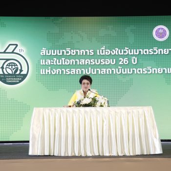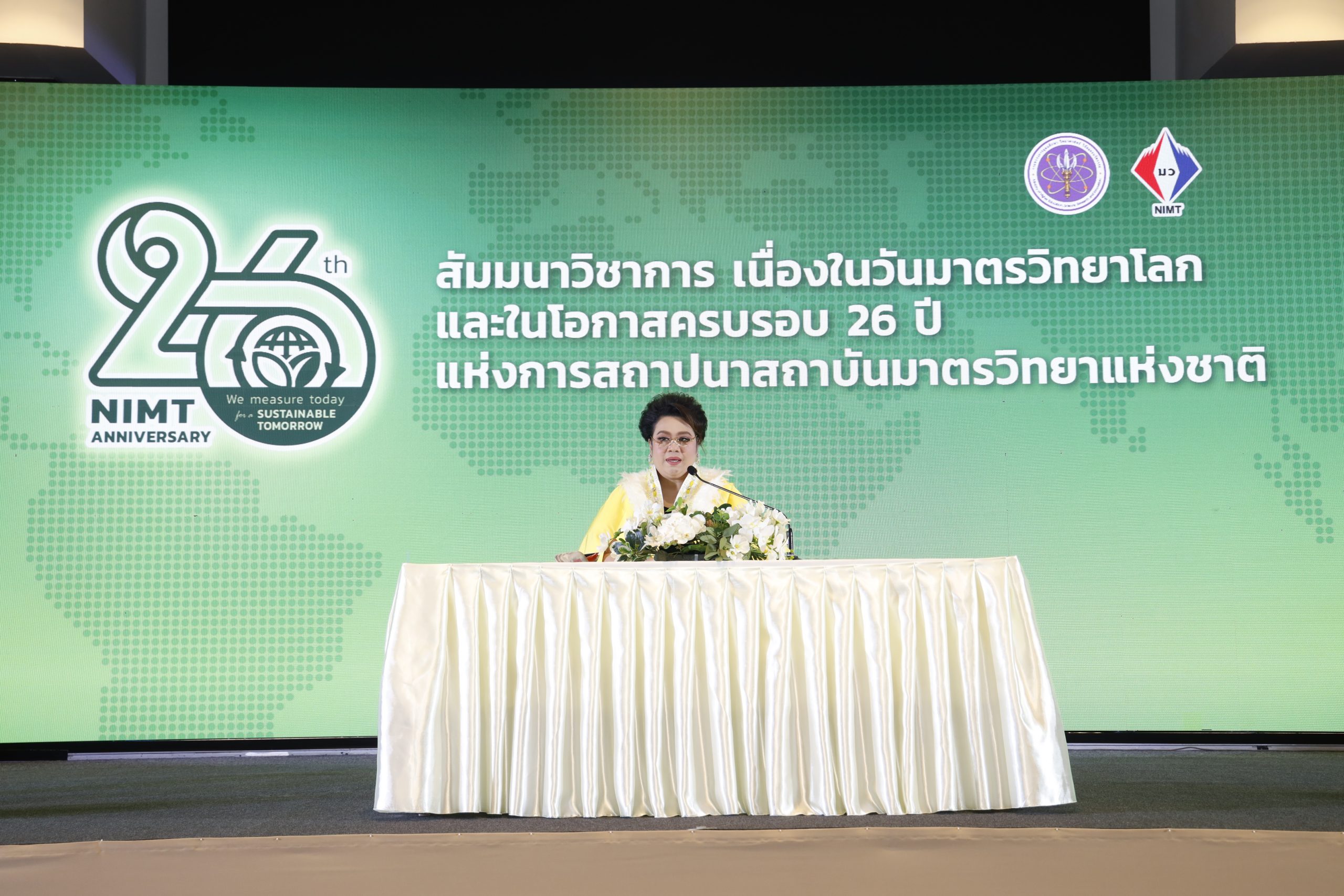 กระทรวงการอุดมศึกษา วิทยาศาสตร์ วิจัยและนวัตกรรม (อว.) โดย สถาบันมาตรวิทยาแห่งชาติ (มว.) จัดงานครบรอบ 26 ปี ภายใต้แนวคิด “เราวัดวันนี้ เพื่อพรุ่งนี้ ที่ยั่งยืน (We measure today for sustainable tomorrow)” เพื่อแสดงศักยภาพด้านการวัดระดับสูง และพันธกิจการส่งมอบการวัดที่ประเทศไทยจำเป็นต้องใช้ในอนาคต ซึ่งต้องเพียงพอที่จะรองรับการพัฒนาหรือการเปลี่ยนแปลงของโลกในทุกมิติ โดย นางสาวศุภมาส อิศรภักดี รัฐมนตรีว่าการกระทรวงการอุดมศึกษา วิทยาศาสตร์ วิจัยและนวัตกรรม ในฐานะประธานกรรมการมาตรวิทยาแห่งชาติ เป็นประธานในพิธี ซึ่งในงานนี้มี Dr. Hyun-Min Park ประธานองค์กรมาตรวิทยาระดับภูมิภาคเอเชียและแปซิฟิก (APMP Chair) และ Dr. Hongtao HUANG ผู้เชี่ยวชาญสถาบันมาตรวิทยา แห่งสาธารณรัฐประชาชนจีน (NIM, China) รวมถึงผู้ทรงคุณวุฒิในประเทศหลากหลายสาขา มาร่วมแสดงความยินดี และให้เกียรติบรรยายพิเศษ ในวันที่ 20 พฤษภาคม 2567 ณ ห้องแซฟไฟร์ 204-206 ชั้น 2 อาคารอิมแพ็คฟอรั่ม ศูนย์แสดงสินค้าและการประชุมอิมแพ็ค เมืองทองธานี จังหวัดนนทบุรี