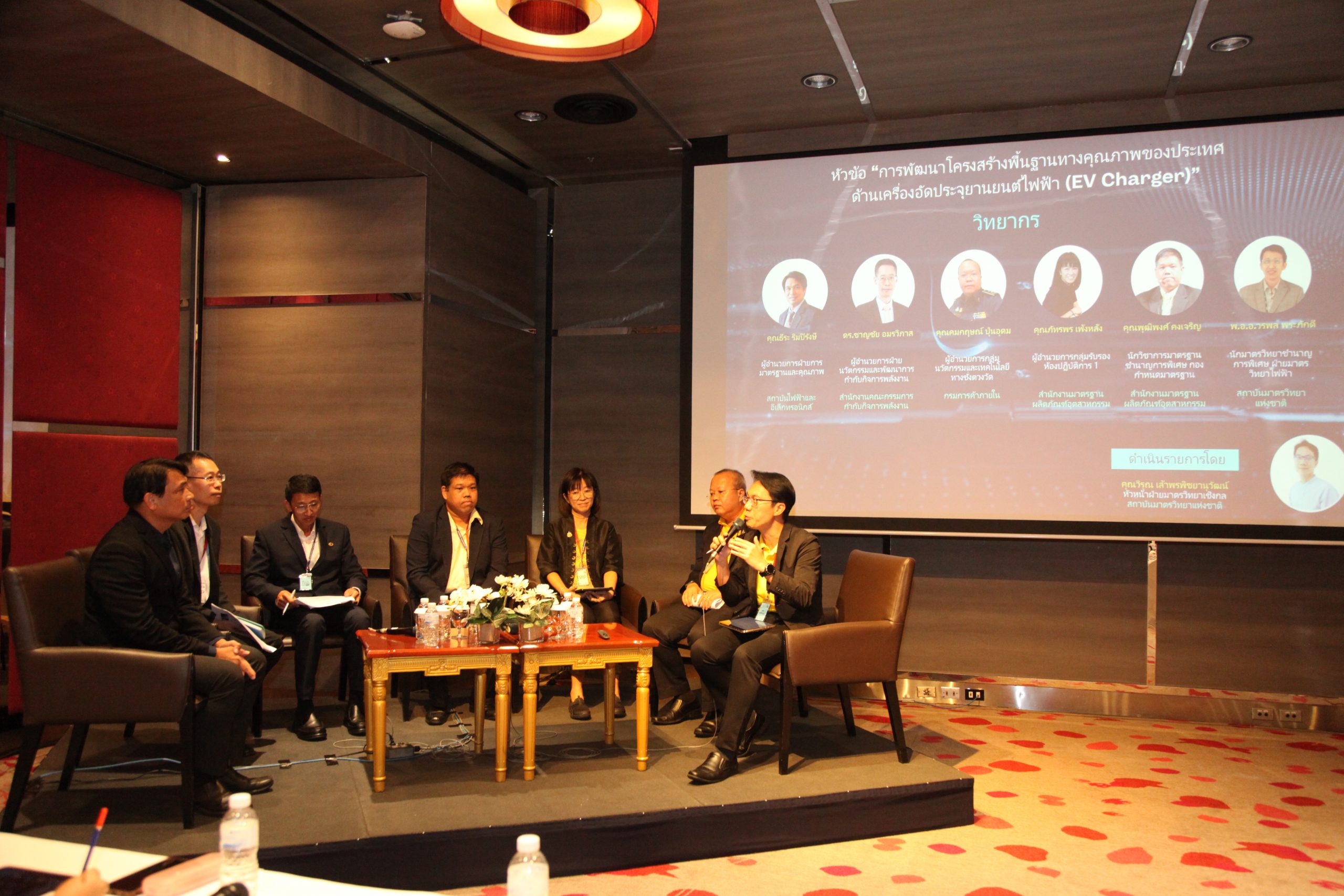 - หัวข้อ “การพัฒนาโครงสร้างพื้นฐานทางคุณภาพของประเทศ ด้านเครื่องอัดประจุยานยนต์ไฟฟ้า (EV Charger)”