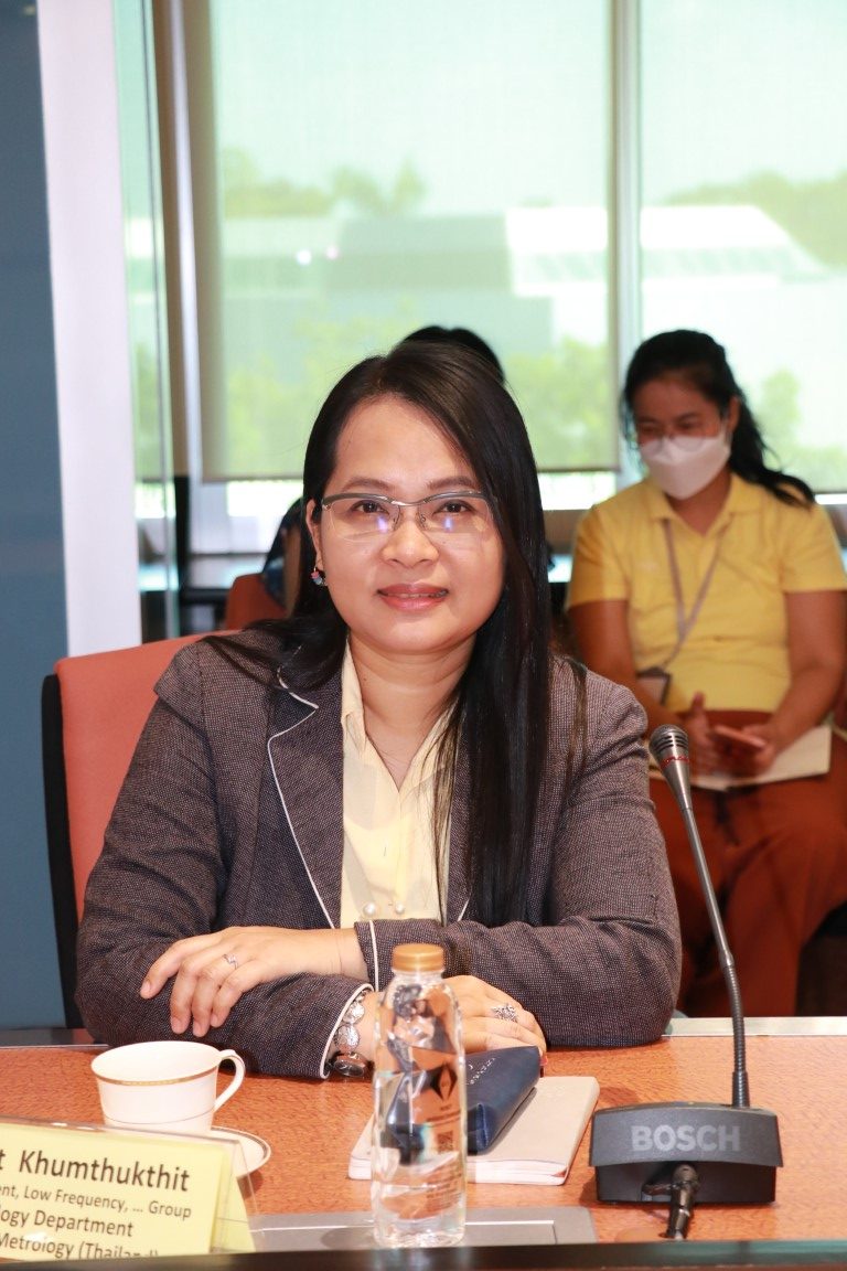 - คุณเนตรนพิศ คุ้มทุกทิศ รักษาการหัวหน้ากลุ่มงานไฟฟ้ากระแสตรงและความถี่ต่ำ ความถี่สูง และแม่เหล็กไฟฟ้า ฝ่ายมาตรวิทยาไฟฟ้า