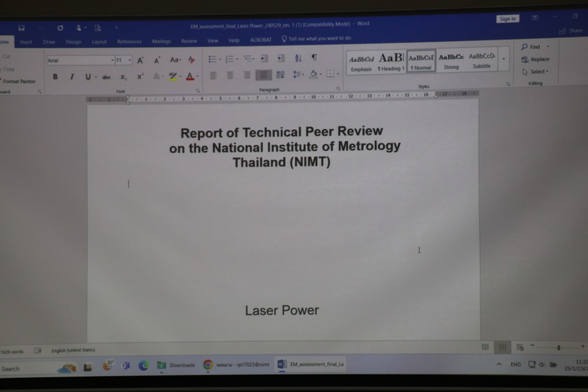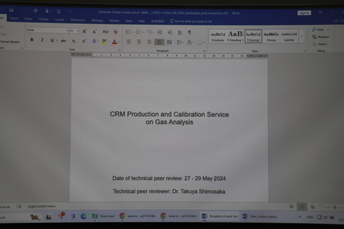 กระทรวงการอุดมศึกษา วิทยาศาสตร์ วิจัยและนวัตกรรม โดยสถาบันมาตรวิทยาแห่งชาติ (มว.) พล.ต.ท.นพ. พรชัย สุธีรคุณ ผู้อำนวยการ มว. คุณอนุสรณ์ ทนหมื่นไวย รองผู้อำนวยการ ดร.จรัญ ยะฝา ผู้ช่วยผู้อำนวยการ มว. พร้อมด้วย ดร.จริยา บัวเจริญ นักมาตรวิทยาเชี่ยวชาญและผู้จัดการคุณภาพ ISO/IEC 17025 รวมทั้งนักมาตรวิทยาทั้งจากฝ่ายมาตรวิทยาไฟฟ้า และนักมาตรวิทยาจากฝ่ายมาตรวิทยาเคมีและชีวภาพ เข้าร่วมประชุมการตรวจประเมินระบบคุณภาพ ISO/IEC 17025 โดยห้องปฏิบัติการ Laser power ตรวจประเมินในรูปแบบ Pathway A ผู้ตรวจประเมินด้านเทคนิค (ต่างประเทศ) คือ Dr. Takayuki Numata จาก National Metrology Institute of Japan (NMIJ) ประเทศญี่ปุ่น ผู้ตรวจประเมินด้านระบบคุณภาพ (Quality Expert) จากสำนักงานมาตรฐานผลิตภัณฑ์อุตสาหกรรม (สมอ.) คือ คุณศิโรรัตน์ ทอนฮามแก้ว ส่วนการตรวจประเมินของห้องปฏิบัติการ Organic analysis ตรวจประเมินในรูปแบบ Pathway A ผู้ตรวจประเมินด้านเทคนิค คือ Dr. Kihwan Choi จาก Korea Research Institute of Standards and Science : KRISS ผู้ตรวจประเมินด้านคุณภาพ ISO/IEC 17025 คือ คุณศิโรรัตน์ ทอนฮามแก้ว จากสำนักงานมาตรฐานผลิตภัณฑ์อุตสาหกรรม (สมอ.) และผู้ตรวจประเมินด้านคุณภาพ ISO 17034 คือ คุณสุดา นันทวิทยา หัวหน้าทีมตรวจประเมิน คุณกิจติศักดิ์ ยศอินทร์ ผู้ประสานงาน/ผู้ประเมิน และคุณอุทุมพร แท่นทอง ผู้สังเกตการณ์ จากกรมวิทยาศาสตร์บริการ (วศ.) และสุดท้ายการตรวจประเมินของห้องปฏิบัติการ Gas analysis ตรวจประเมินในรูปแบบ Pathway A ผู้ตรวจประเมินด้านเทคนิค คือ Dr. Takuya Shimosaka จาก National Metrology Institute of Japan (NMIJ) ประเทศญี่ปุ่น ผู้ตรวจประเมินด้านคุณภาพ ISO/IEC 17025 คือคุณคมสัน ยังจรูญ จากสำนักงานมาตรฐานผลิตภัณฑ์อุตสาหกรรม (สมอ.) และผู้ตรวจประเมินด้านคุณภาพ ISO 17034 คือ คุณสุดา นันทวิทยา หัวหน้าทีมตรวจประเมิน จากกรมวิทยาศาสตร์บริการ (วศ.) การตรวจประเมินของฝ่ายมาตรวิทยาเคมีและชีวภาพ จัดขึ้น ณ อาคารมาตรธำรง ส่วนการตรวจประเมินของฝ่ายมาตรวิทยาไฟฟ้า จัดขึ้น ณ อาคารผดุงมาตร (มว.) คลองห้า จังหวัดปทุมธานี