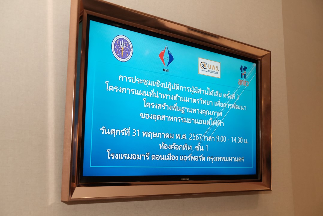 นายอนุสรณ์ ทนหมื่นไวย รองผู้อำนวยการสถาบันมาตรวิทยาแห่งชาติ เป็นประธานเปิดการประชุมเชิงปฏิบัติการผู้มีส่วนได้เสีย ครั้งที่ 3 ภายใต้โครงการแผนที่นำทางด้านมาตรวิทยาเพื่อการพัฒนาโครงสร้างพื้นฐานทางคุณภาพของอุตสาหกรรมยานยนต์ไฟฟ้า ซึ่งเป็นโครงการที่ได้รับงบประมาณสนับสนุนจาก กองทุนส่งเสริมวิทยาศาสตร์ วิจัย และนวัตกรรม และสำนักงานสภานโยบายการอุดมศึกษา วิทยาศาสตร์ วิจัยและนวัตกรรมแห่งชาติ โดยหน่วยบริหารและจัดการทุนด้านการเพิ่มความสามารถในการแข่งขันของประเทศ (บพข.) ที่จัดโดย สถาบันมาตรวิทยาแห่งชาติ (มว.) กระทรวงการอุดมศึกษา วิทยาศาสตร์ วิจัยและนวัตกรรม (อว.) ณ โรงแรมอมารี ดอนเมือง แอร์พอร์ต กรุงเทพฯ ซึ่งภายในงานได้มีการนำเสนอ (ร่าง) แผนที่นำทางด้านมาตรวิทยาของอุตสาหกรรมยานยนต์ไฟฟ้า โดย ดร.ชัชวาล คุรุภากรณ์ นักมาตรวิทยาชำนาญการพิเศษ กลุ่มงานมาตรฐานปฐมภูมิไฟฟ้า เวลาและความถี่ หัวหน้าโครงการฯ เพื่อเป็นการรับฟังข้อเสนอแนะ และแลกเปลี่ยนความคิดเห็น กับผู้เข้าร่วมประชุม เพื่อนำข้อสรุปที่ได้ไปปรับใช้ในการทำแผนที่นำทางฯให้เป็นรูปธรรมและเหมาะสมกับทุกภาคส่วนที่เกี่ยวข้องต่อไป