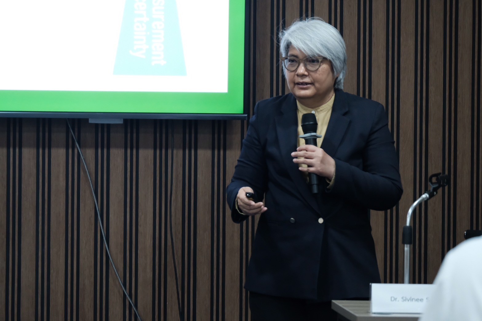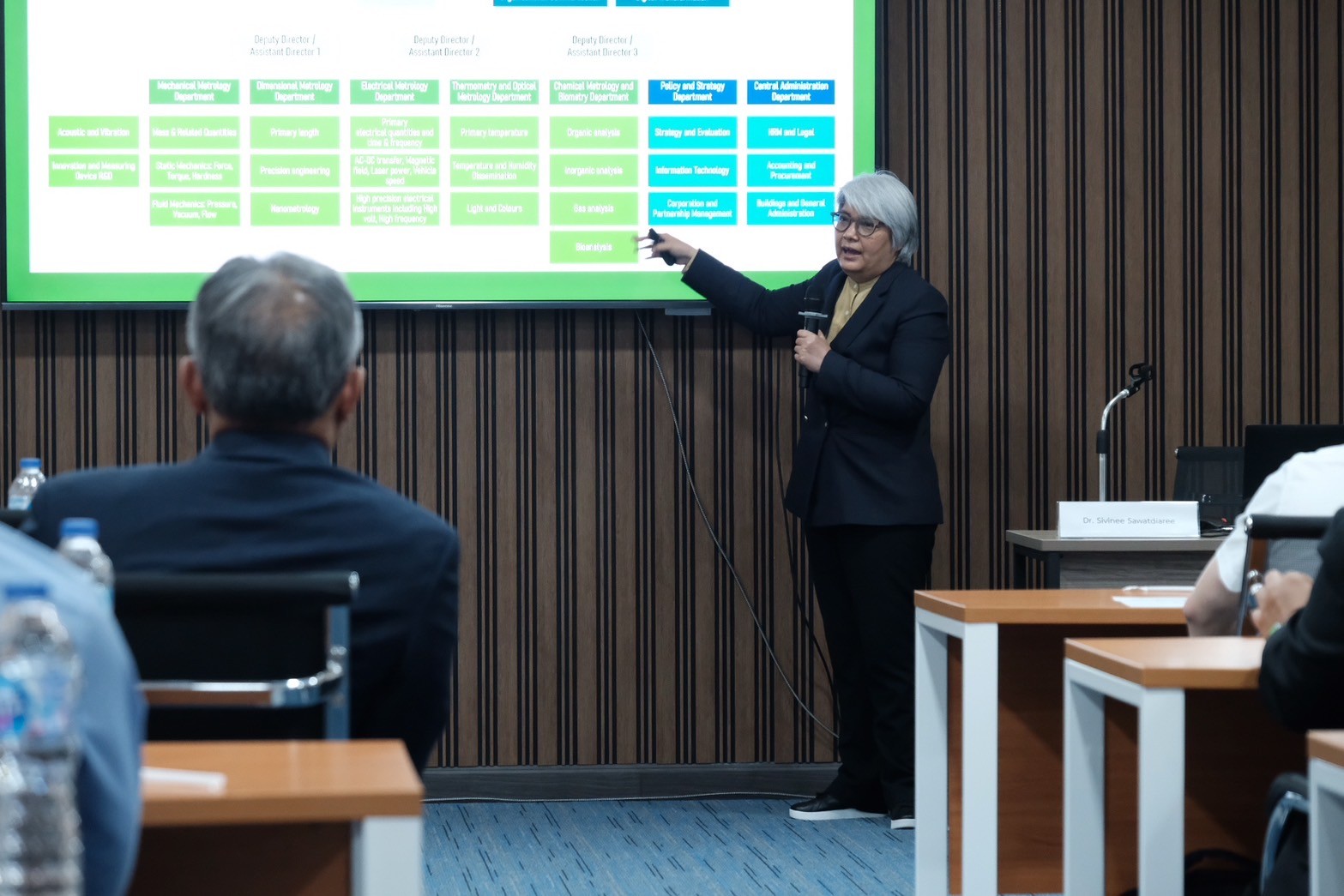 - ดร.สิวินีย์ สวัสดิ์อารี หัวหน้าฝ่ายมาตรวิทยาไฟฟ้า มว. วิทยากรบรรยายหัวข้อ Implementing of metrology for safety and quality of rail transit
