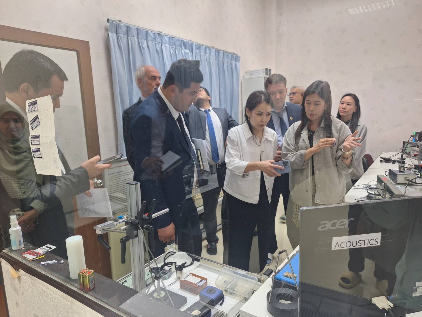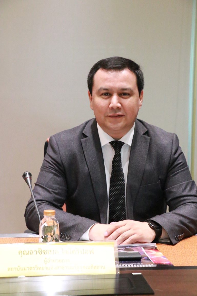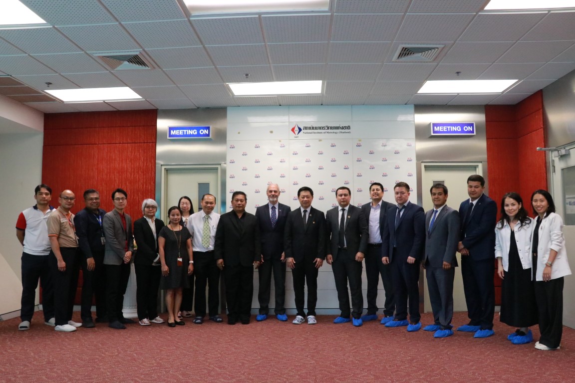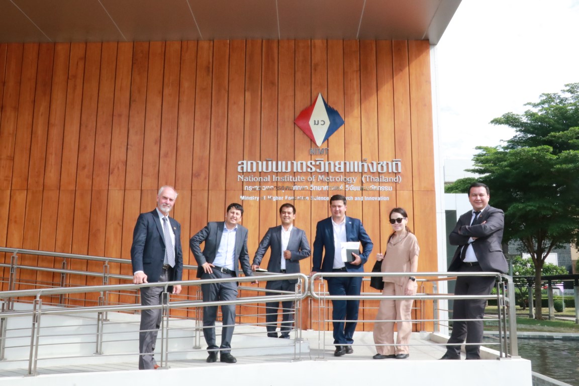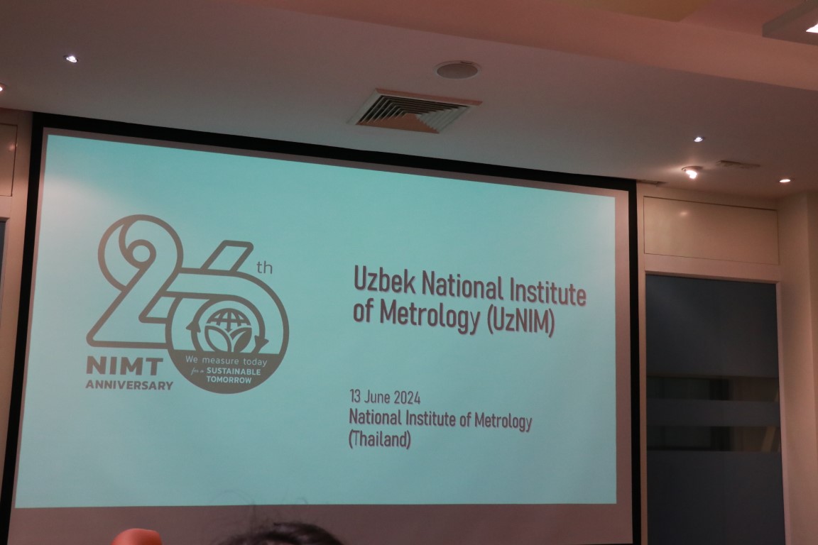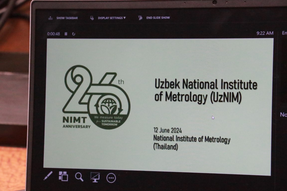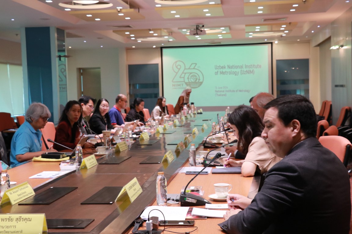 พล.ต.ท.นพ.พรชัย สุธีรคุณ ผู้อำนวยการ พร้อมด้วย นายอนุสรณ์ ทนหมื่นไวย รองผู้อำนวยการ ดร.จรัญ ยะฝา ผู้ช่วยผู้อำนวยการ หัวหน้าฝ่าย รักษาการหัวหน้าฝ่าย และเจ้าหน้าที่ มว. ให้การต้อนรับ Mr. Lazizbek Furkatjanovich Saidoripov ผู้อำนวยการ The Uzbek National Institute of Metrology (UzNIM), ประเทศอุซเบกิสถาน พร้อมทีมงาน Dr.-Ing. Clemens Sanetra ผู้เชี่ยวชาญระยะยาวสำหรับโครงสร้างพื้นฐานทางคุณภาพ PTB และ Ms. Aynur Khusanovna Turabekova ผู้แทนโครงการท้องถิ่นในอุซเบกิสถานและล่าม ในโอกาสเข้าศึกษาดูงาน รับคำปรึกษา และเรียนรู้ประสบการณ์จากสถาบันมาตรวิทยาของประเทศไทย รวมทั้งเยี่ยมชมห้องปฏิบัติการของสถาบัน สำนักงานกลางชั่ง ตวง วัด (กรมการค้าภายใน) การไฟฟ้าฝ่ายผลิตแห่งประทศไทย และสมาคมส่งเสริมเทคโนโลยี (ไทย-ญี่ปุ่น) โดยกิจกรรมการหารือ ศึกษาดูงาน และเยี่ยมชมห้องปฏิบัติการของสถาบัน จัดขึ้น ณ อาคารผดุงมาตร อาคารพัฒนาระบบราง และอาคารมาตรธำรง (มว.) คลองห้า จังหวัดปทุมธานี
