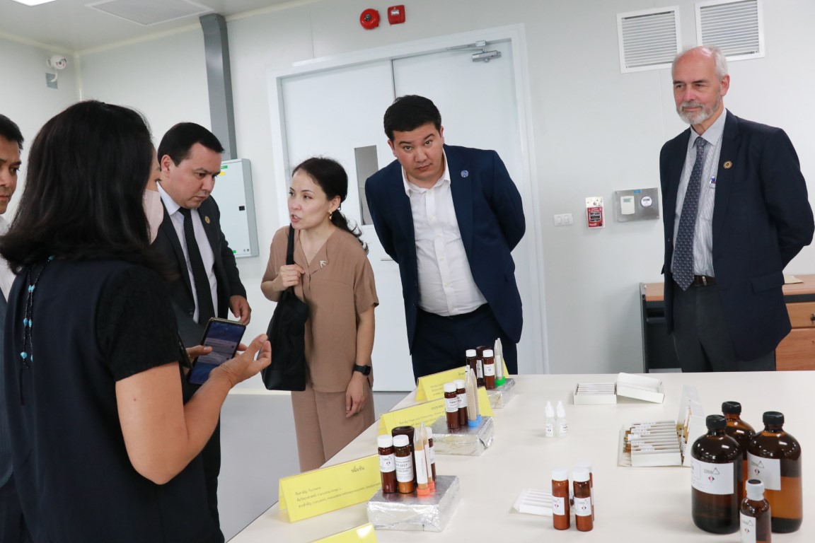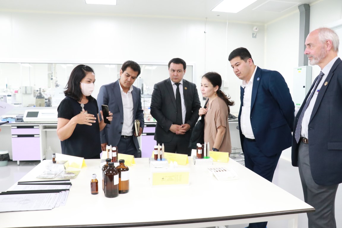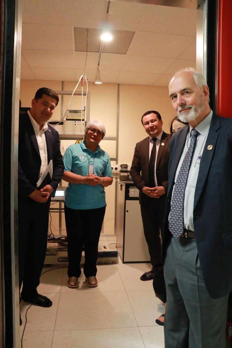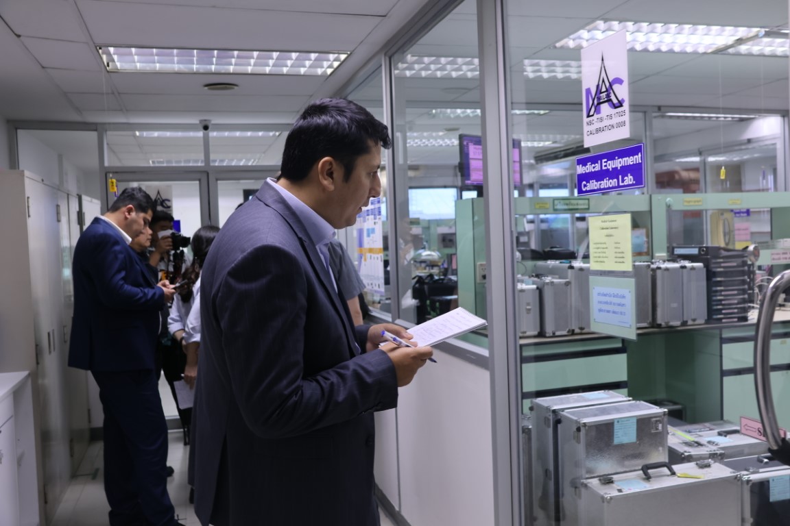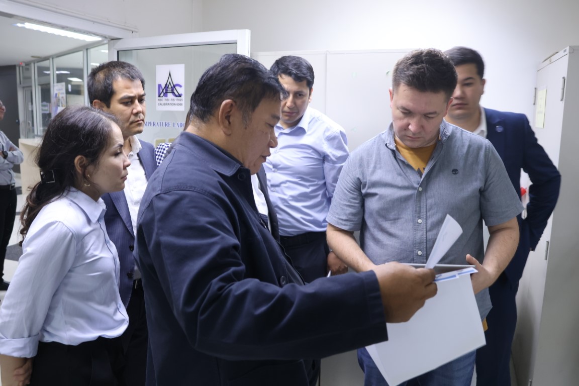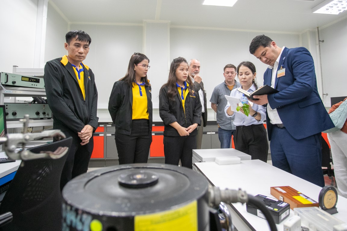 พล.ต.ท.นพ.พรชัย สุธีรคุณ ผู้อำนวยการ พร้อมด้วย นายอนุสรณ์ ทนหมื่นไวย รองผู้อำนวยการ ดร.จรัญ ยะฝา ผู้ช่วยผู้อำนวยการ หัวหน้าฝ่าย รักษาการหัวหน้าฝ่าย และเจ้าหน้าที่ มว. ให้การต้อนรับ Mr. Lazizbek Furkatjanovich Saidoripov ผู้อำนวยการ The Uzbek National Institute of Metrology (UzNIM), ประเทศอุซเบกิสถาน พร้อมทีมงาน Dr.-Ing. Clemens Sanetra ผู้เชี่ยวชาญระยะยาวสำหรับโครงสร้างพื้นฐานทางคุณภาพ PTB และ Ms. Aynur Khusanovna Turabekova ผู้แทนโครงการท้องถิ่นในอุซเบกิสถานและล่าม ในโอกาสเข้าศึกษาดูงาน รับคำปรึกษา และเรียนรู้ประสบการณ์จากสถาบันมาตรวิทยาของประเทศไทย รวมทั้งเยี่ยมชมห้องปฏิบัติการของสถาบัน สำนักงานกลางชั่ง ตวง วัด (กรมการค้าภายใน) การไฟฟ้าฝ่ายผลิตแห่งประทศไทย และสมาคมส่งเสริมเทคโนโลยี (ไทย-ญี่ปุ่น) โดยกิจกรรมการหารือ ศึกษาดูงาน และเยี่ยมชมห้องปฏิบัติการของสถาบัน จัดขึ้น ณ อาคารผดุงมาตร อาคารพัฒนาระบบราง และอาคารมาตรธำรง (มว.) คลองห้า จังหวัดปทุมธานี
