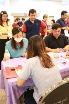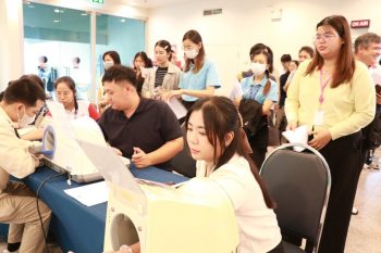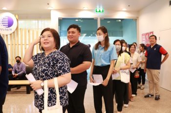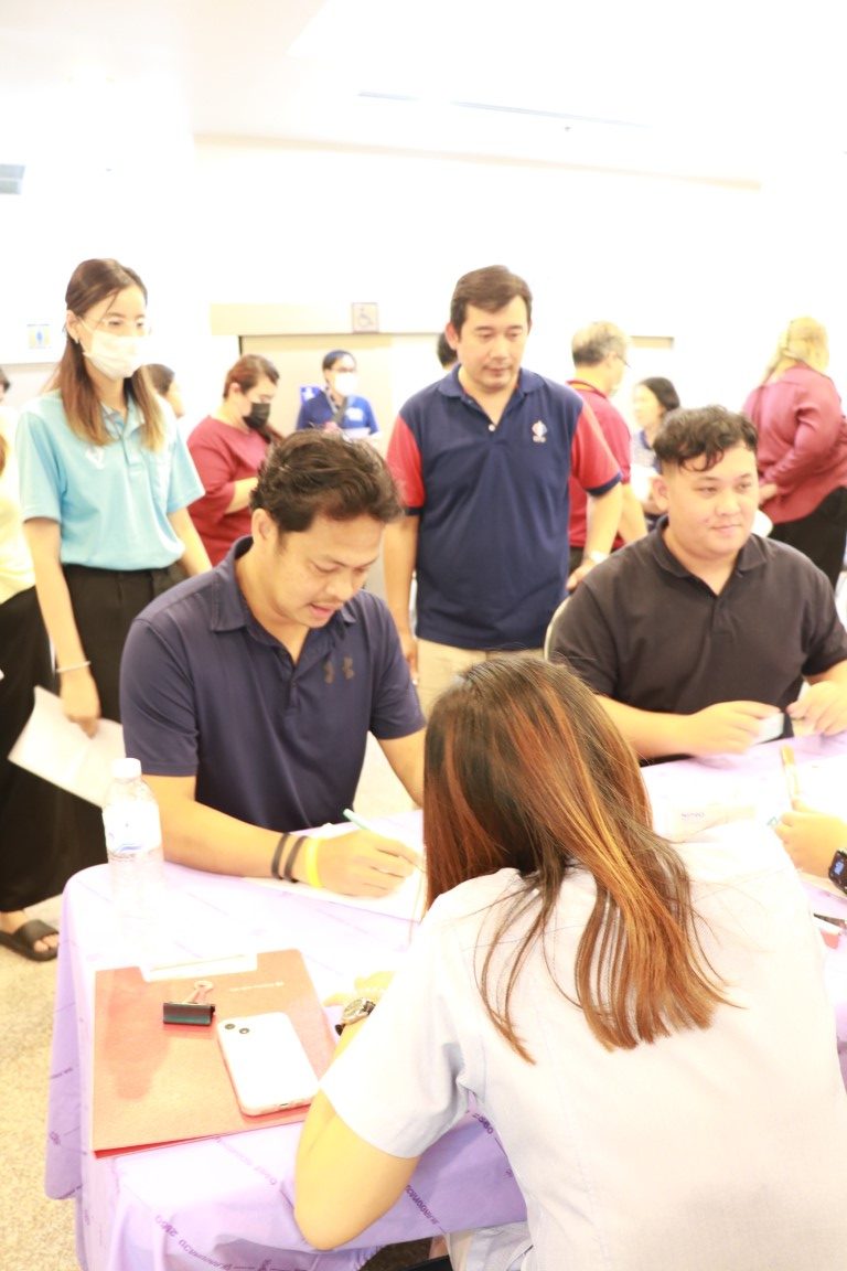 - เข้าแถวรอซักประวัติ ยื่นเอกสารยินยอมฉีดวัคซีน