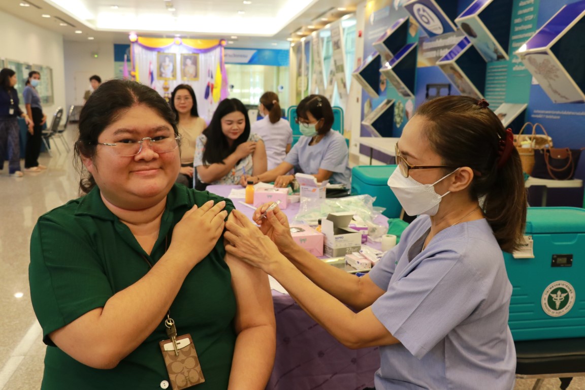 กระทรวงการอุดมศึกษา วิทยาศาสตร์ วิจัยและนวัตกรรม (อว.) โดยกลุ่มงานบริหารและพัฒนาทรัพยากรบุคคล ฝ่ายบริหารกลาง สถาบันมาตรวิทยาแห่งชาติ (มว.) จัดสรรวัคซีนไข้หวัดใหญ่ 4 สายพันธุ์ให้พนักงาน/ลูกจ้าง โดยในครั้งนี้ได้รับโควต้าจำนวน 30 โดส ซึ่งวัตถุประสงค์ของการฉีดวัคซีนไข้หวัดใหญ่นี้ก็เพื่อป้องกันการติดเชื้อไข้หวัดใหญ่ และเป็นวิธีที่มีประสิทธิภาพที่สุดในการป้องกันโรคไข้หวัดใหญ่ รวมทั้งยังป้องกันอาการแทรกซ้อนอื่นๆ ที่เกิดจากเชื้อไวรัสไข้หวัดใหญ่ได้อีกด้วย กิจกรรมดังกล่าวจัดขึ้น ณ จุดบริการชั้น 1 อาคารแอดมิน สถาบันวิจัยวิทยาศาสตร์และเทคโนโลยีแห่งประเทศไทย (วว.)