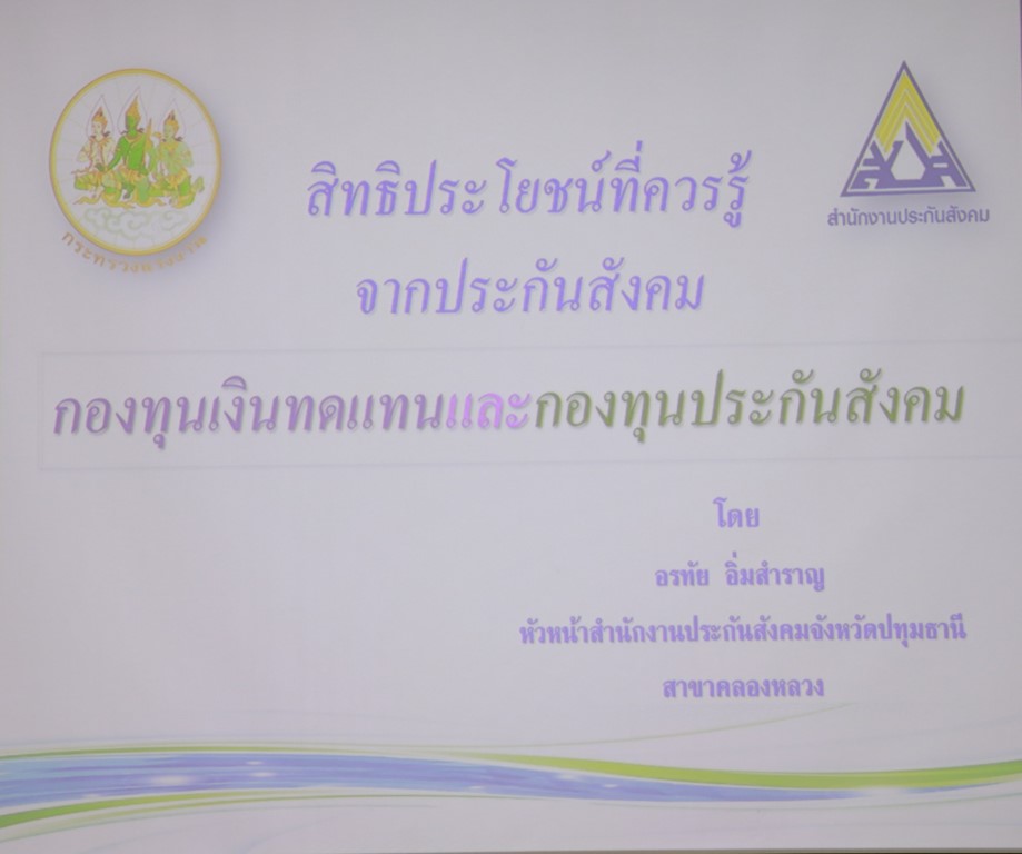 - คุณอรทัย อิ่มสำราญ หัวหน้าสำนักงานประกันสังคมจังหวัดปทุมธานี สาขาคลองหลวง