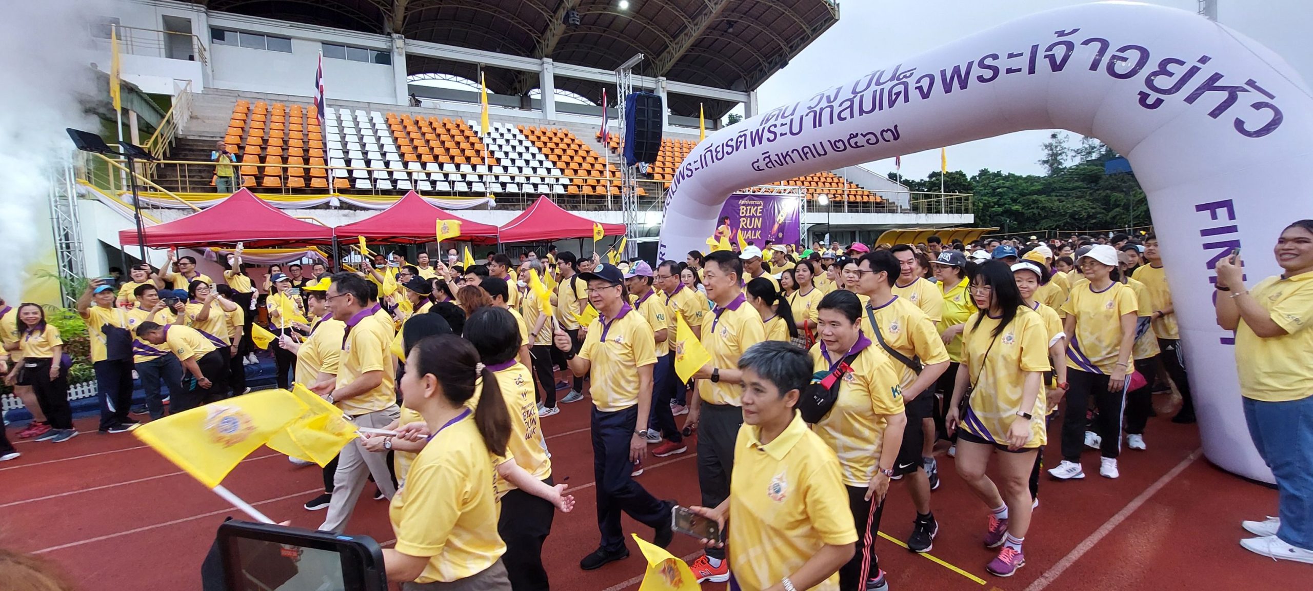 กระทรวงการอุดมศึกษา วิทยาศาสตร์ วิจัยและนวัตกรรม (อว.) โดยนางสาวศุภมาส อิศรภักดี รัฐมนตรีว่าการกระทรวงการอุดมศึกษา วิทยาศาสตร์ วิจัยและนวัตกรรม เป็นประธานเปิดโครงการ “เดิน-วิ่ง-ปั่น” เฉลิมพระเกียรติพระบาทสมเด็จพระเจ้าอยู่หัว เนื่องในโอกาสพระราชพิธีมหามงคลเฉลิมพระชนมพรรษา ๖ รอบ ๒๘ กรกฎาคม ๒๕๖๗ โดยมีมหาวิทยาลัยร่วมจัดกิจกรรมพร้อมกันทั่วประเทศ ทั้งนี้ ในส่วนกลาง มหาวิทยาลัยเกษตรศาสตร์ได้ร่วมเป็นเจ้าภาพในด้านสถานที่การจัดกิจกรรม ในการนี้ สถาบันมาตรวิทยาแห่งชาติ (มว.) โดยพล.ต.ท.นพ.พรชัย สุธีรคุณ พร้อมด้วยพนักงาน มว. ได้เข้าร่วมในกิจกรรมดังกล่าวด้วย ณ สนามอินทรีจันทรสถิตย์ มหาวิทยาลัยเกษตรศาสตร์ บางเขน