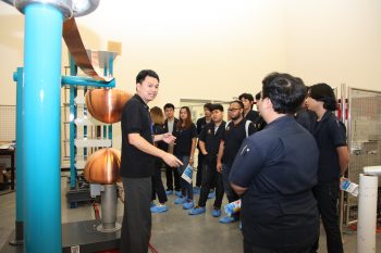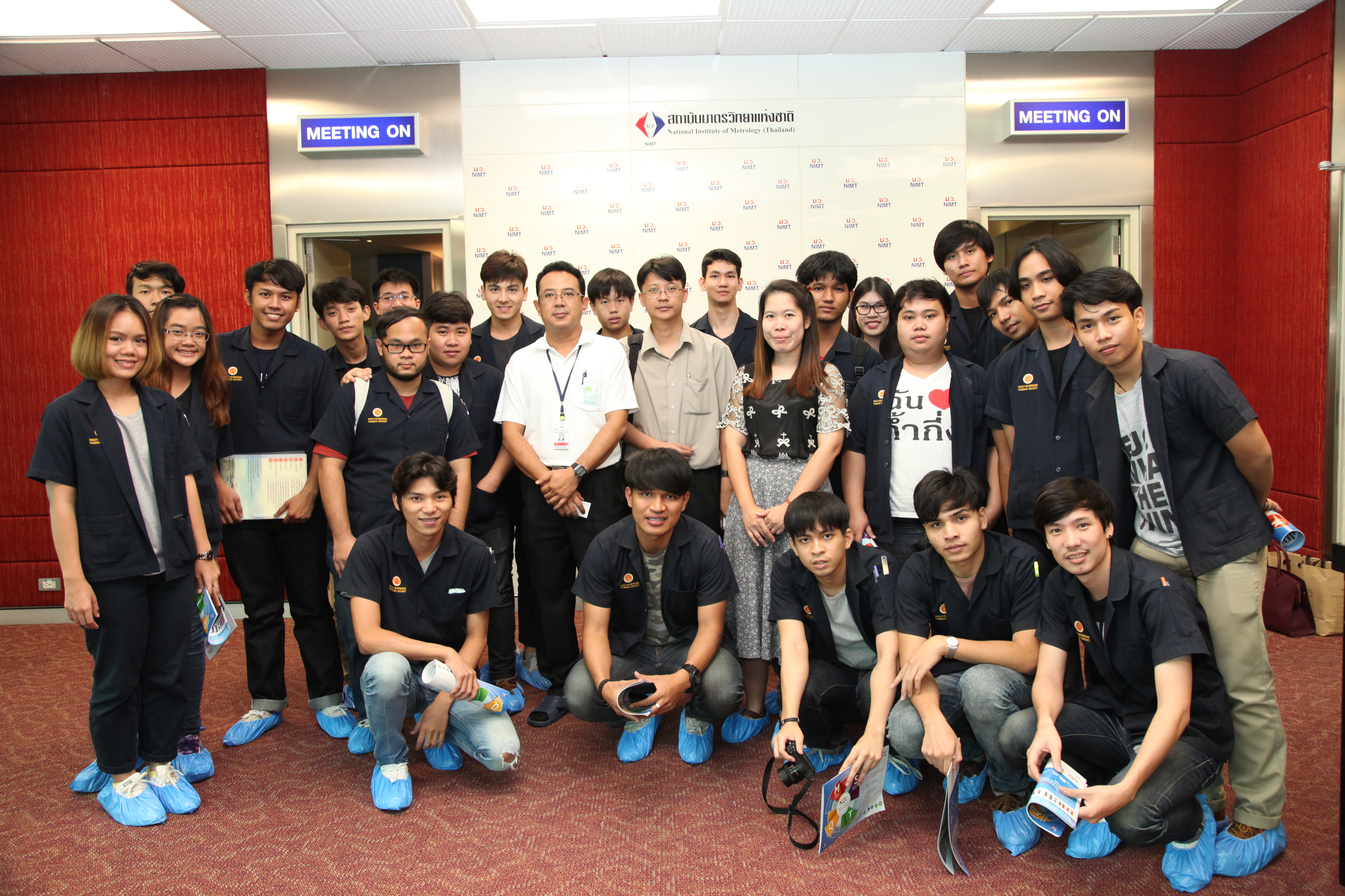 นายสุรเชษฐ เพิ่มฉลาด นักมาตรวิทยา ชำนาญการ ห้องปฏิบัติการไฟฟ้ากระแสตรง ให้การต้อนรับคณะนักศึกษาชั้นปีที่ ๔ โครงการหลักสูตรนวัตกรรมทางวิศวกรรมศาสตร์ TU-Programme of Innovative Engineering (TU-PINE) หลักสูตรควบวิศวกรรมศาสตรมหาบัณฑิต และวิศวกรรมศาสตรมหาบัณฑิต สาขาวิชาวิศวกรรมไฟฟ้าอุตสาหการ (iPEN-iEE) คณะวิศวกรรมศาสตร์ มหาวิทยาลัยธรรมศาสตร์ เข้ารับฟังการบรรยายและเยี่ยมชมห้องปฏิบัติการต่างๆ ของสถาบัน โดยมีวัตถุประสงค์เพื่อเป็นโอกาสให้นักศึกษาได้รับประสบการณ์จริงจากปฏิบัติการของสถาบัน ตลอดจนสามารถนำองค์ความรู้ที่ได้รับไปพัฒนาต่อยอดต่อไปในอนาคต ณ อาคารผดุงมาตร มว. จ.ปทุมธานี