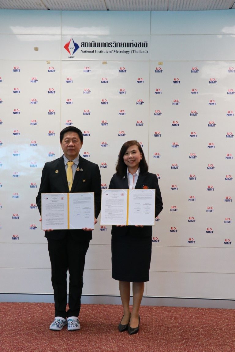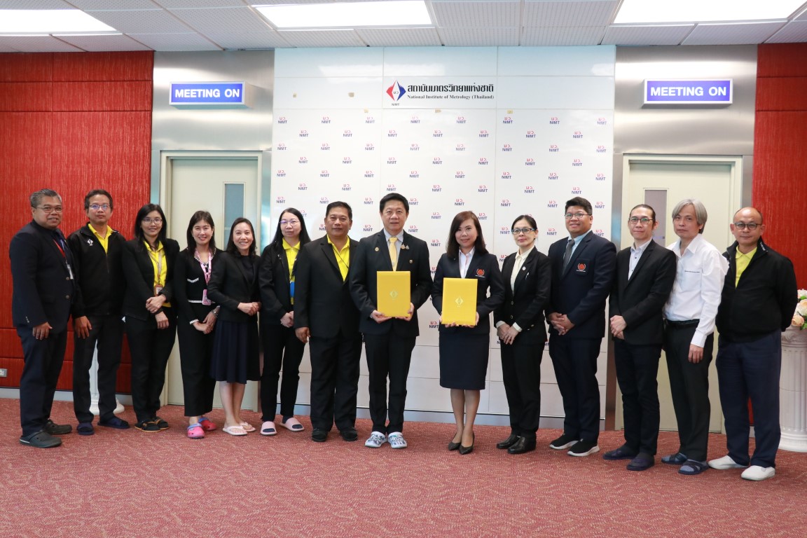 กระทรวงการอุดมศึกษา วิทยาศาสตร์ วิจัยและนวัตกรรม (อว.) สถาบันมาตรวิทยาแห่งชาติ (มว.) โดยพล.ต.ท.นพ.พรชัย สุธีรคุณ ผู้อำนวยการ นายอนุสรณ์ ทนหมื่นไวย รองผู้อำนวย พร้อมด้วยผู้บริหาร มว. ให้การต้อนรับ รองศาสตราจารย์ ดร.เพียรพูล กมลจิตร์ประภา คณบดี คณะวิทยาศาสตร์ประยุกต์ มหาวิทยาลัยเทคโนโลยีพระจอมเกล้าพระนครเหนือ และคณะ ในโอกาสร่วมลงนามบันทึกข้อตกลงความร่วมมือทางวิชาการ และการวิจัยทางด้านมาตรวิทยา ระหว่าง คณะวิทยาศาสตร์ประยุกต์ มหาวิทยาลัยเทคโนโลยีพระจอมเกล้าพระนครเหนือ และสถาบันมาตรวิทยาแห่งชาติ ในการร่วมกันดำเนินการด้านงานวิจัย พัฒนา นวัตกรรม หลักสูตรการศึกษา และการเรียนการสอนทางด้านมาตรวิทยาทางการแพทย์ และพัฒนาทรัพยากรบุคคลของทั้งสองหน่วยงาน และบุคคลากรของประเทศให้มีความรู้ ความสามารถในด้านมาตรวิทยาทางการแพทย์ อันจะนำไปสู่การยกระดับคุณภาพของการวัดและมาตรฐานการวัดทางการแพทย์ขึ้นในประเทศ โดยกิจกรรมดังกล่าวจัดขึ้น ณ อาคารผดุงมาตร (มว.) คลองห้า จังหวัดปทุมธานี