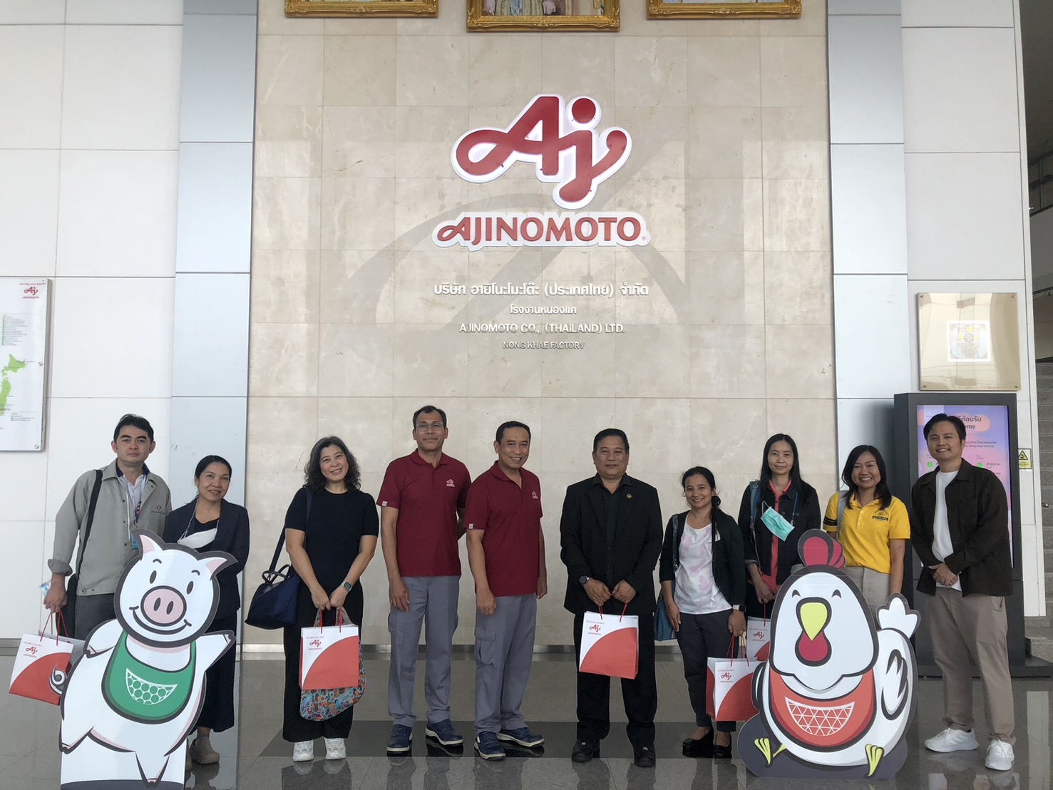 กระทรวงการอุดมศึกษา วิทยาศาสตร์ วิจัยและนวัตกรรม (อว.) สถาบันมาตรวิทยาแห่งชาติ (มว.) โดยนายอนุสรณ์ ทนหมื่นไวย รองผู้อำนวยการ พร้อมด้วย ดร.กิตติยา เชียร์แมน หัวหน้าฝ่ายมาตรวิทยาเคมีและชีวภาพ หัวหน้ากลุ่มงานฯ ฝ่ายมาตรวิทยาเคมีและชีวภาพ หัวหน้ากลุ่มงานถ่ายทอดค่ามาตรฐานและความชื้น และนักมาตรวิทยา เข้าเยี่ยมชมห้องปฏิบัติการของบริษัทอายิโนะโมะโต๊ะ โรงงานหนองแค จังหวัดสระบุรี โดยมีคุณนัฎทพนธ์ พานิชดี ผู้จัดการโรงงานหนองแค และคุณประสาน พอกพูน ผู้จัดการโรงงานเบอร์ดี้ ให้การต้อนรับ โดยมีวัตถุประสงค์เพื่อเยี่ยมชม และศึกษาดูงาน กิจกรรมดังกล่าวจัดขึ้น ณ บริษัทอายิโนะโมะโน๊ะ หนองแค จังหวัดสระบุรี