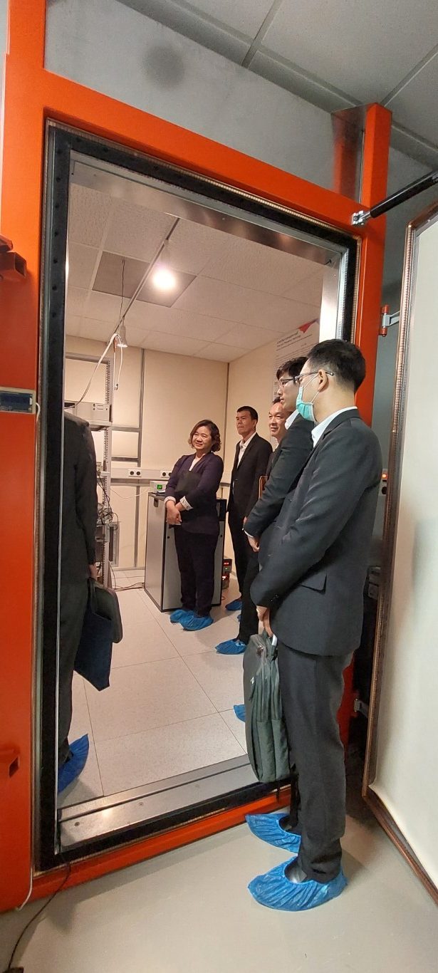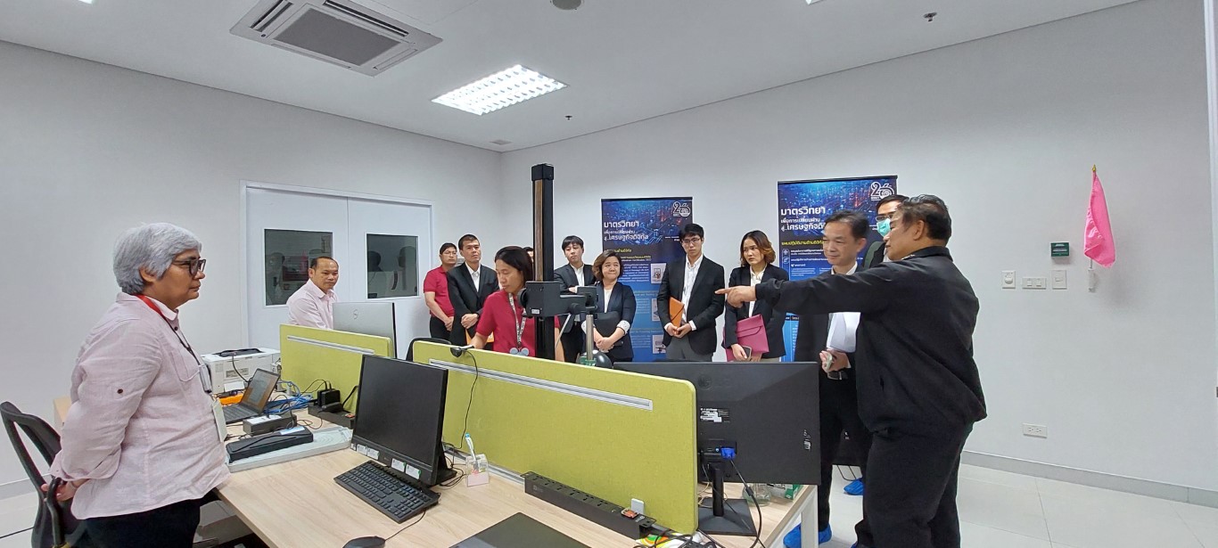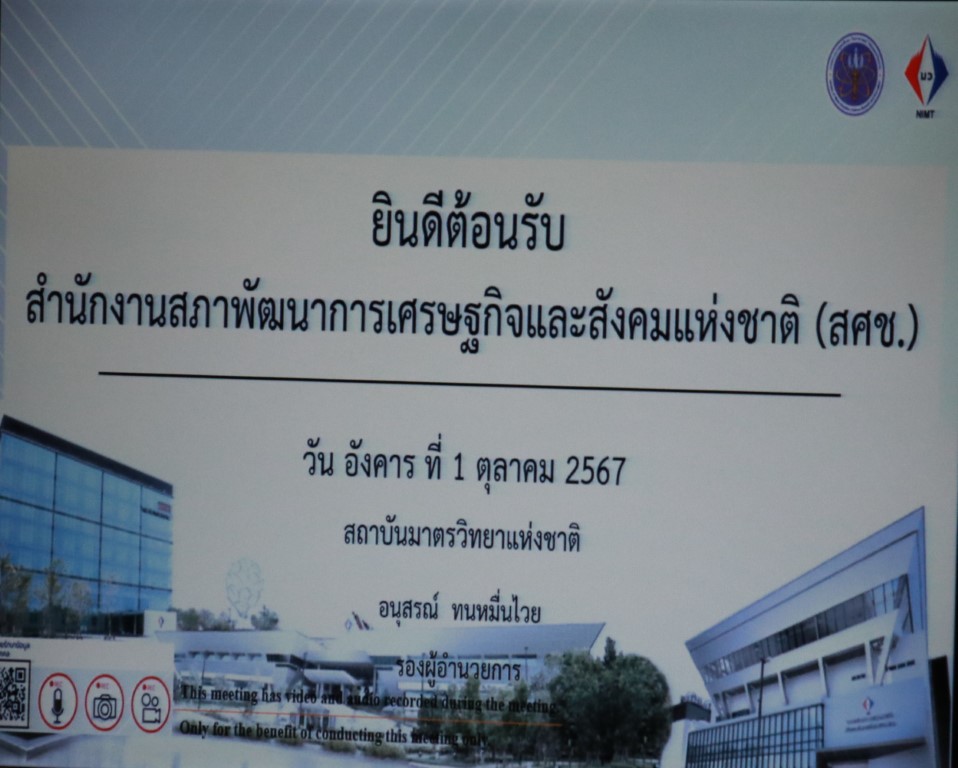 กระทรวงการอุดมศึกษา วิทยาศาสตร์ วิจัยและนวัตกรรม (อว.) สถาบันมาตรวิทยาแห่งชาติ (มว.) โดย พล.ต.ท.นพ.พรชัย สุธีรคุณ ผู้อำนวยการ พร้อมด้วย นายอนุสรณ์ ทนหมื่นไวย รองผู้อำนวยการ ดร.จรัญ ยะฝา ผู้ช่วยผู้อำนวยการ และผู้บริหาร มว. ให้การต้อนรับ นายอธิพงศ์ หิรัญเรืองโชค ผู้อำนวยการกองยุทธศาสตร์และประสานการพัฒนาขีดความสามารถในการแข่งขัน สำนักงานสภาพัฒนาเศรษฐกิจและสังคมแห่งชาติ (สศช.) และเจ้าหน้าที่ ในโอกาสเข้าศึกษาดูงานที่สถาบัน รวมทั้งเยี่ยมชมห้องปฏิบัติการในพื้นที่ ซึ่งจะเป็นประโยชน์ต่อการวิเคราะห์และให้ความเห็นต่อ “(ร่าง) แผนปฏิบัติการด้านการพัฒนาระบบมาตรวิทยาแห่งชาติ ระยะที่ ๔ (พ.ศ. ๒๕๖๖-๒๕๗๐)” รวมถึงการจัดทำข้อเสนอแนะ แนวทางการพัฒนานโยบายเพิ่มขีดความสามารถในการแข่งขันทางด้านวิทยาศาสตร์ เทคโนโลยี และอุตสาหกรรมในอนาคตได้อย่างเหมาะสม และสอดคล้องกับบริบทของประเทศไทยและสถานการณ์ที่เปลี่ยนแปลงอย่างรวดเร็วต่อไป กิจกรรมการศึกษาดูงานและเยี่ยมชมห้องปฏิบัติการจัดขึ้น ณ อาคารผดุงมาตร อาคารพัฒนาระบบรางฯ และอาคารมาตรธำรง (มว.) คลองห้า จังหวัดปทุมธานี
