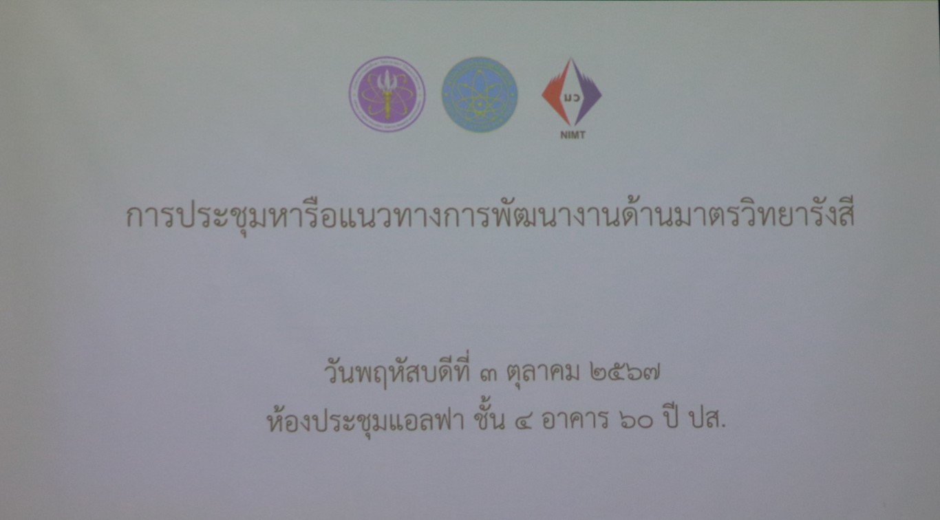 กระทรวงการอุดมศึกษา วิทยาศาสตร์ วิจัยและนวัตกรรม (อว.) สถาบันมาตรวิทยาแห่งชาติ (มว.) โดย พล.ต.ท. นพ.พรชัย สุธีรคุณ ผู้อำนวยการ นายอนุสรณ์ ทนหมื่นไวย รองผู้อำนวยการ ดร.จรัญ ยะฝา ผู้ช่วยผู้อำนวยการ มว. พร้อมด้วยหัวหน้ากลุ่มงาน ฝ่ายมาตรวิทยาเคมีและชีวภาพ เข้าหารือแนวทางการพัฒนางานด้านมาตรวิทยารังสี และเยี่ยมชมห้องปฏิบัติการของสำนักงานปรมาณูเพื่อสันติ ในโอกาสนี้ นางสาว อัมพิกา อภิชัยบุคคล รองเลขาธิการสำนักงานปรมาณูเพื่อสันติ นางดารุณี พีขุนทด ผู้อำนวยการกองพัฒนาระบบและมาตรฐานกำกับดูแลความปลอดภัย ดร.วิทิต ผึ่งกัน ผู้เชี่ยวชาญเฉพาะด้านการประเมินค่ากัมมันตภาพรังสี และทีมงานให้การต้อนรับและนำชมห้องปฏิบัติการ ณ ห้องประชุมแอลฟา ชั้น 4 อาคาร 60 ปี สำนักงานปรมาณูเพื่อสันติ บางเขน กรุงเทพฯ